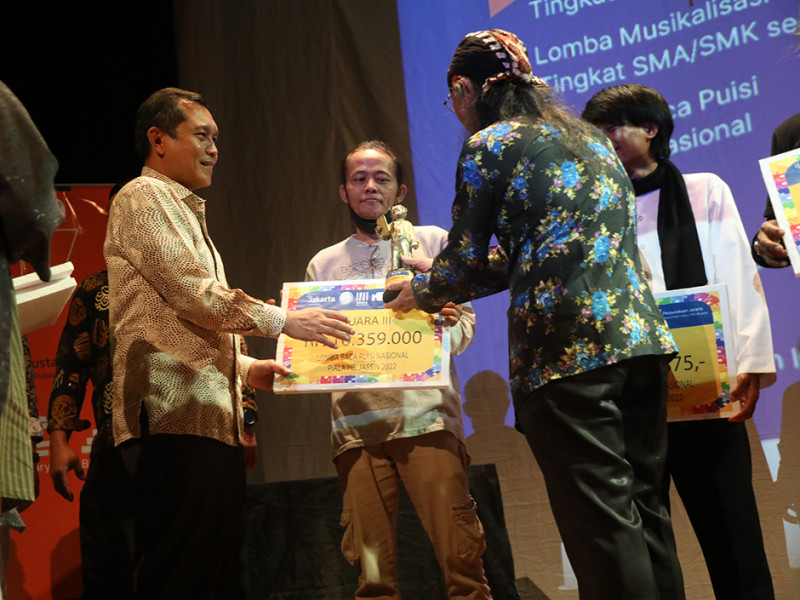 Dinas Perpustakaan dan Kearsipan (Dispusip) DKI Jakarta bersama dengan Bengkel Deklamasi Jakarta dan Pusat Dokumentasi Sastra Hans Bague (HB) Jassin, menggelar malam anugerah Piala HB Jassin 2022 di Teater Kecil, Taman Ismail Marzuki, Jakarta Pusat, Minggu (28/8). (Foto: Mochamad Tresna Suheryanto/beritajakarta.id)