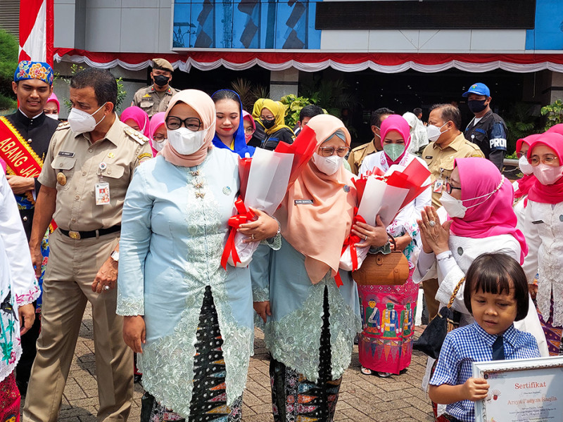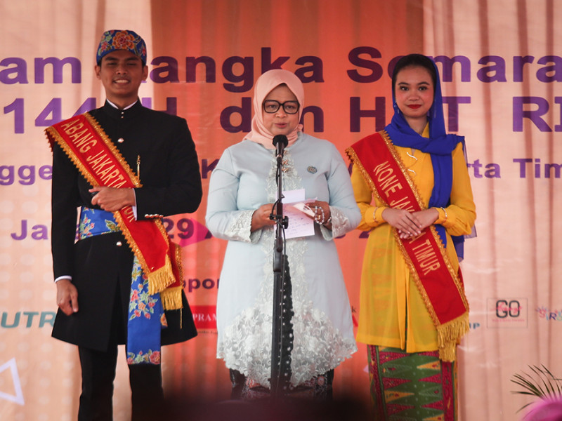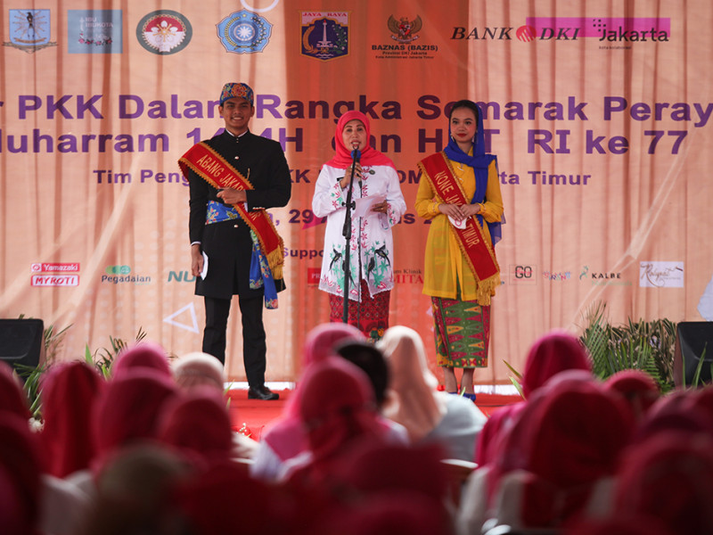 Ketua Tim Penggerak Pemberdayaan Kesejahteraan Keluarga (TP PKK) DKI Jakarta, Fery Farhati, menghadiri Gebyar PKK 2022 di halaman Kantor Wali Kota Jakarta Timur, Cakung, Senin (29/8). Gebyar PKK digelar dalam rangka menyemarakkan HUT ke-77 Kemerdekaan Republik Indonesia dan Muharam 1444 Hijriah. (Foto: Nugroho Sejati/beritajakarta.id)