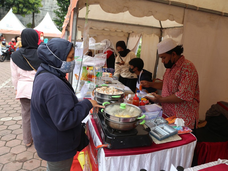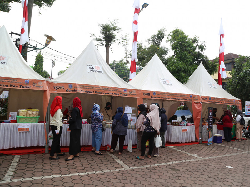 Satuan Pelaksana Perindustrian, Perdagangan, Koperasi, Usaha Kecil dan Menengah (Satpel PPKUKM) Kecamatan Kebon Jeruk menggelar Bazar Merdeka pada 29-30 Agustus 2022. Selain untuk memeriahkan HUT ke-77 Kemerdekaan RI, kegiatan ini sekaligus dalam rangka mendukung transaksi cashless menggunakan Quick Response Code Indonesian Standard (QRIS). (Foto: Reza Hapiz/beritajakarta.id)