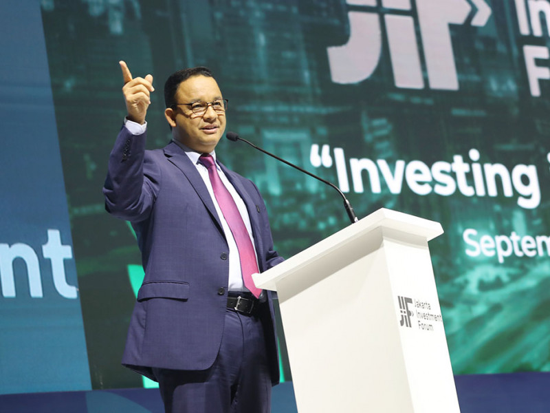 Gubernur DKI Jakarta, Anies Baswedan membuka Jakarta Investment Forum (JIF) 2022 di Hotel Fairmont, Jakarta Pusat, Kamis (1/9). JIF diinisiasi Dinas Penanaman Modal dan Pelayanan Terpadu Satu Pintu (PM-PTSP) DKI Jakarta melalui Unit Pengelola Jakarta Investment Centre (JIC) berkolaborasi dengan U20 Mayors Summit dan Bank Indonesia. (Foto: Mochamad Tresna Suheryanto/beritajakarta.id)