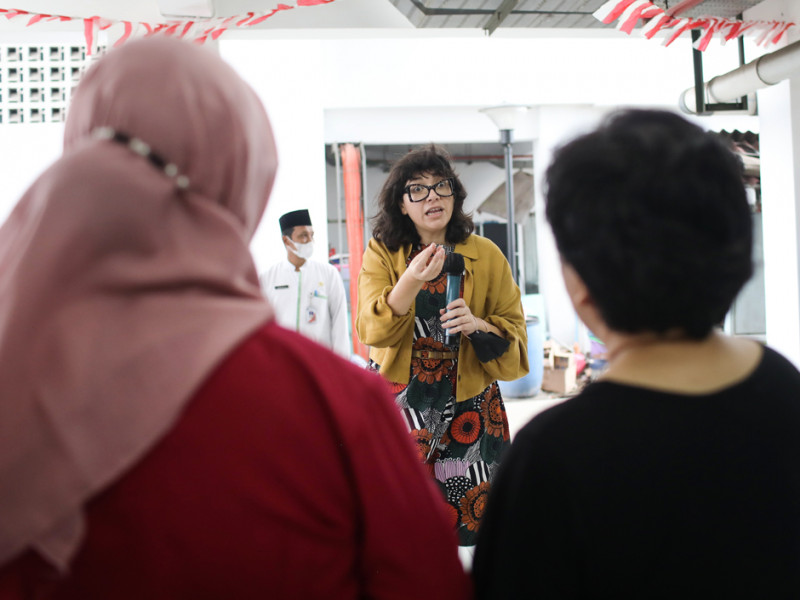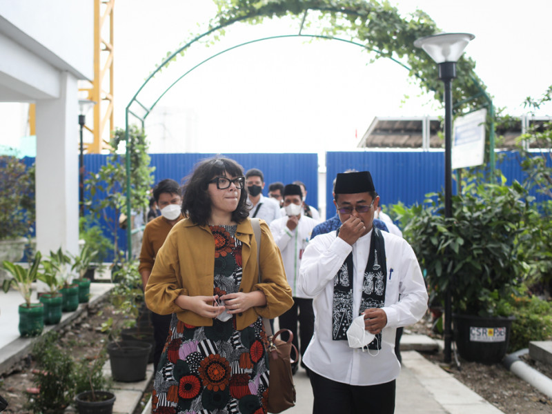 Delegasi Kota Sydney, Australia yang diwakili oleh Deputy Lord Mayor of Sydney, Jess Scully mengunjungi Kampung Susun Akuarium di Penjaringan, Jakarta Utara, Jumat (2/9). Kampung Akuarium terpilih sebagai best practice Community Action Plan (CAP)/Kampung Improvement Program (KIP) di Jakarta. (Foto: Nugroho Sejati/beritajakarta.id)
