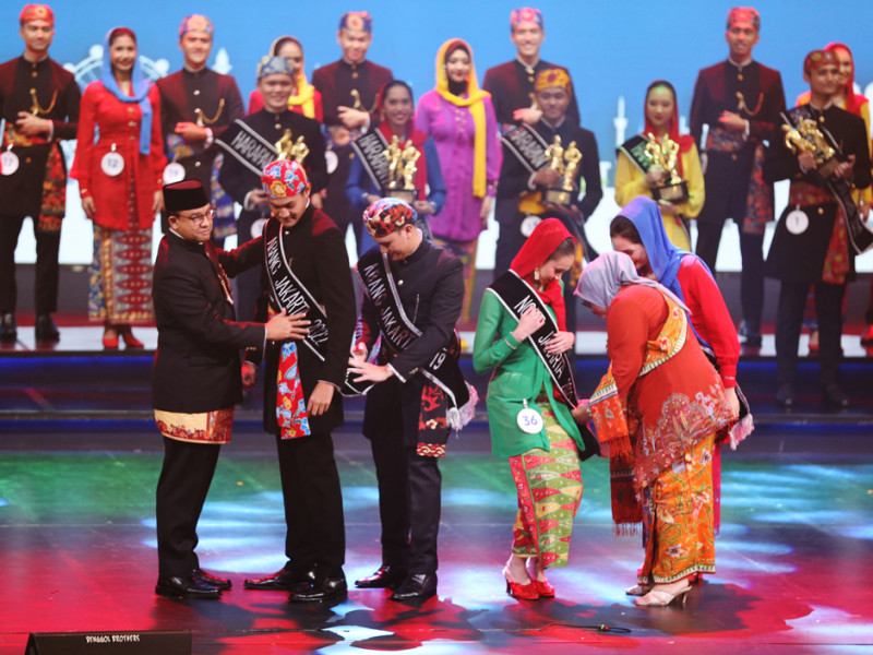 Andika Pratama dari Jakarta Pusat dan Zaida Jameela Heinrich dari Kepulauan Seribu terpilih sebagai Abang None (Abnon) Jakarta Tahun 2022. Malam Final pemilihan Abnon Jakarta yang berlangsung di Teater Ciputra Artpreneur, Jakarta Selatan, Jumat (2/9) malam, dihadiri langsung Gubernur DKI Jakarta, Anies Baswedan. (Foto: Reza Hapiz/beritajakarta.id)