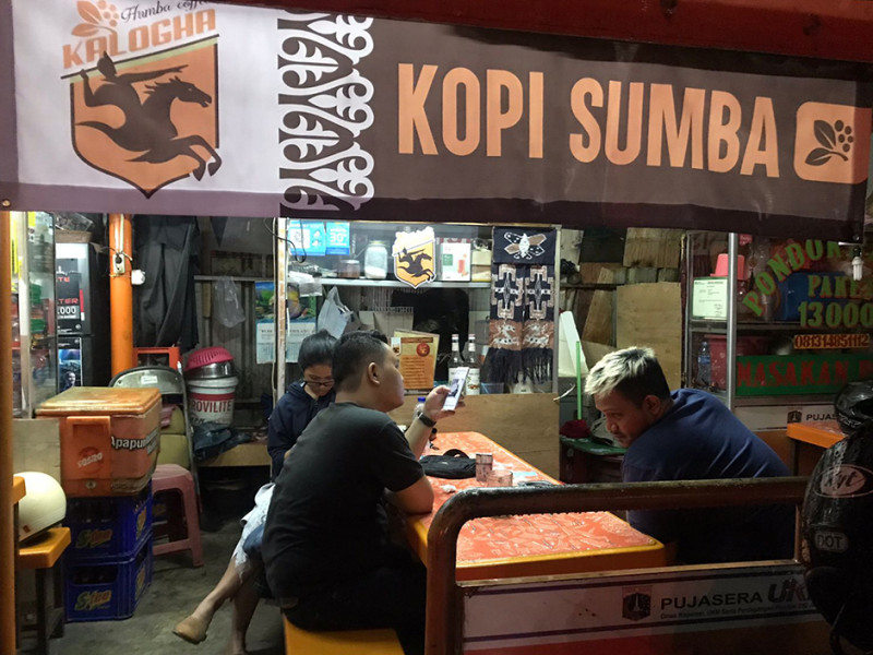 Bagi kalian yang ingin merasakan nikmatnya kopi khas Pulau Sumba, tak perlu jauh-jauh pergi ke Nusa Tenggara Timur (NTT), cukup merapat ke Pujasera JS 14, Jalan Birah II, Rawa Barat, Kebayoran Baru, Jakarta Selatan. Di kawasan tersebut ada sebuah kedai kopi bernama Kalogha Humba Coffee yang khusus menyuguhkan kopi Sumba dengan berbagai varian rasa sesuai selera. (Foto: Reza Hapiz/beritajakarta.id)