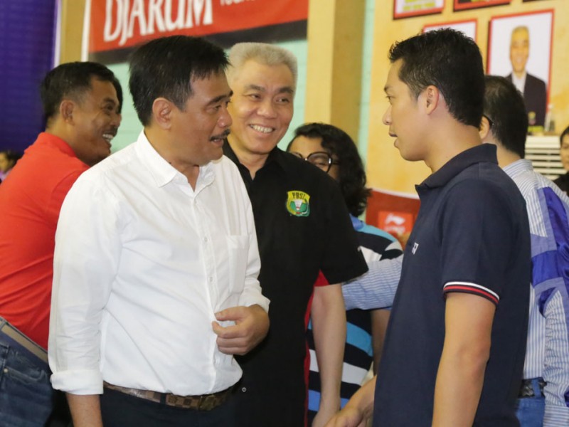 Wakil Gubernur DKI Jakarta, Djarot Saiful Hidayat menyaksikan sekaligus menyerahkan piala dan medali kepada pemenang pertandingan Bulutangkis Djarum Sirkuit Nasional Li Ning Jakarta Open 2015. Eksebisi berlangsung di Gedung Lapangan Bulu Tangkis PBSI Jakarta, Jakarta Pusat, Sabtu (16/05/2015).(Foto: Yopie/beritajakarta.com)