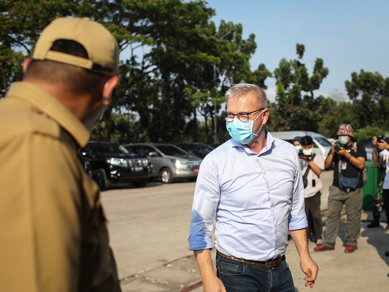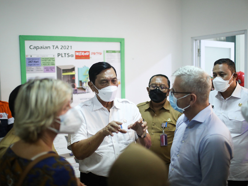Minister for Development Cooperation (Menteri Kerja Sama Pembangunan) Denmark, Flemming Møller Mortensen melakukan kunjungan ke Pembangkit Listrik Tenaga Sampah (PLTSa) Merah Putih dan proyek pembangunan Landfill dan Mining Refuse Derived Fuel (RDF) Plant di Tempat Pengolahan Sampah Terpadu (TPST) Bantar Gebang, Bekasi, Jawa Barat, Selasa (6/9). Dalam kunjungan tersebut, Flemming didampingi Duta Besar Denmark untuk Indonesia, Lars Bo Larson; Menteri Koordinator Bidang Kemaritiman dan Investasi RI, Luhut Binsar Panjaitan; Menteri Dalam Negeri RI, Tito Karnavian; Sekretaris Daerah Provinsi DKI Jakarta, Marullah Matali; Asisten Pembangunan Sekdaprov DKI Jakarta, Afan Adriansyah Idris; dan Kepala Dinas Lingkungan Hidup Provinsi DKI Jakarta, Asep Kuswanto. (Foto: Nugroho Sejati/beritajakarta.id)