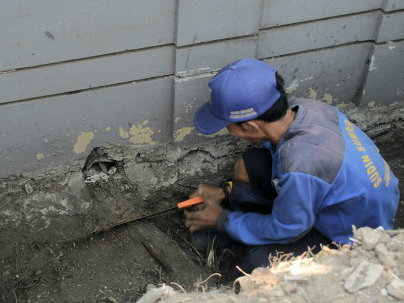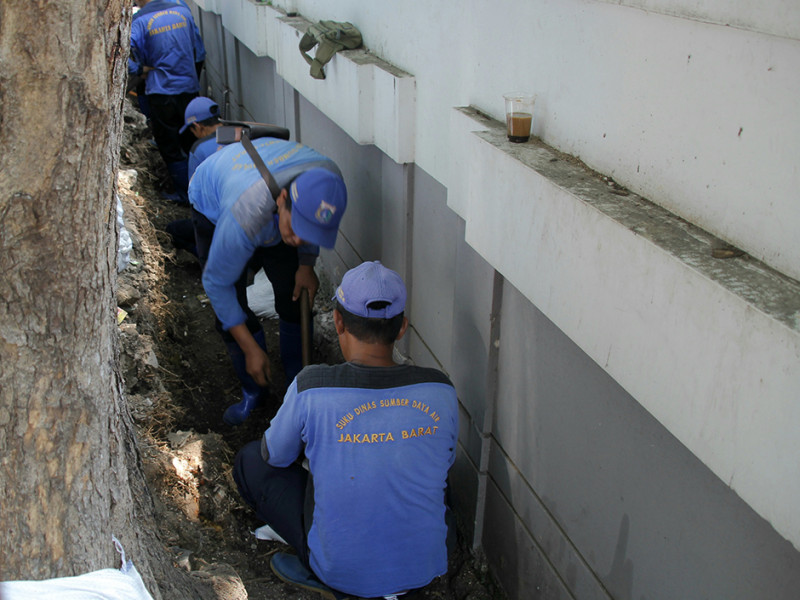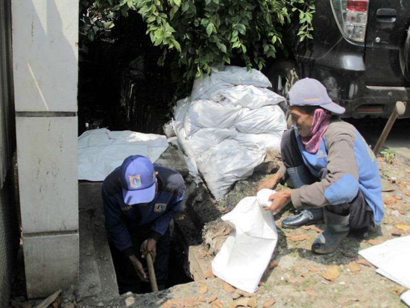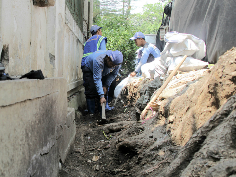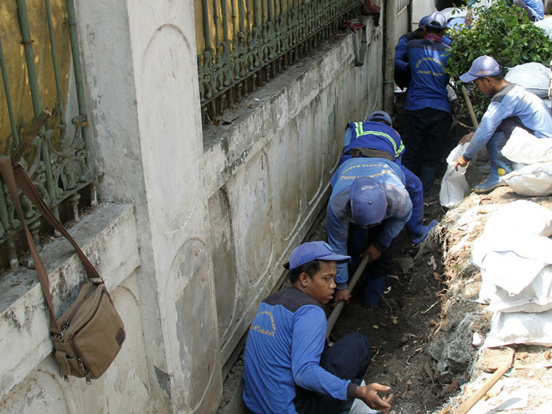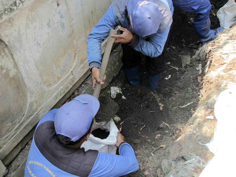 Satuan Pelaksana Sumber Daya Air (Satpel SDA) Kecamatan Palmerah, Jakarta Selatan melakukan perbaikan di Jalan Buni, RT 08/03, Kelurahan Jatipulo. Pengerjaan ini dalam rangka peningkatan kapasitas saluran. (Foto: Reza Hapiz/beritajakarta.id)