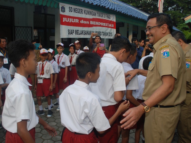 Wakil Gubernur DKI Jakarta, Djarot Saiful Hidayat didampingi Kepala Dinas Pendidikan Provinsi DKI Jakarta Arie Budiman dan Walikota Jakarta Selatan Syamsuddin Noor meninjau langsung pelaksanaan UN Tingkat SD di SDN Kuningan Timur 01 dan SDIT Al-Mughni Jakarta Selatan, Selasa (19/05/2015). (Foto: Reza/beritajakarta.com)