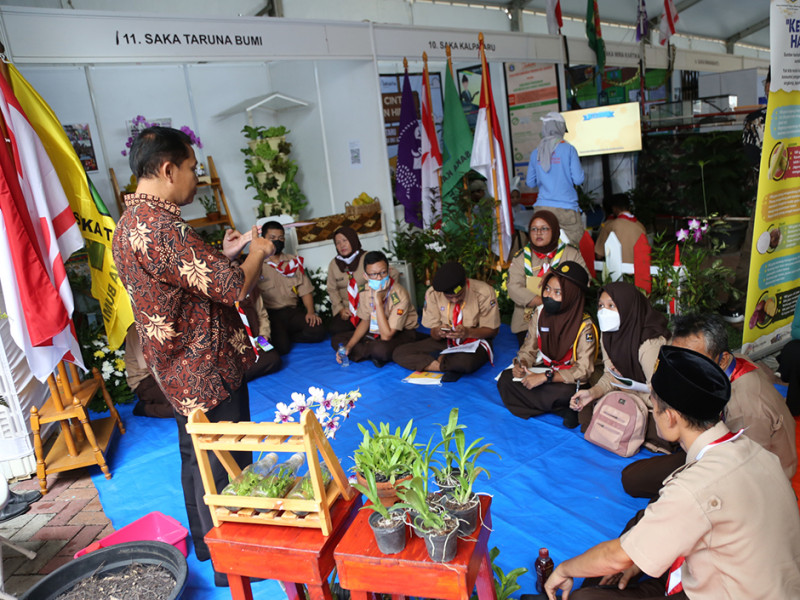 Kwartir Daerah (Kwarda) Gerakan Pramuka Provinsi DKI Jakarta menggelar Festival Saka di Gelanggang Mahasiswa Soemantri Brodjonegoro, Jalan HR Rasuna Said, Setiabudi, Jakarta Selatan, Sabtu (10/9). Festival ini turut didukung Dinas Ketahanan Pangan, Kelautan, dan Pertanian (KPKP) DKI Jakarta. Adapun dukungan tersebut diberikan dalam bentuk sosialisasi dan edukasi di antaranya pengenalan perikanan dan biota air, hewan kesayangan (kelinci), kultur jaringan, serta menu beragam, bergizi, seimbang, dan Aman (B2SA). (Foto: Reza Hapiz/beritajakarta.id)