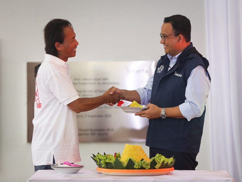 Gubernur DKI Jakarta, Anies Baswedan, meresmikan Kampung Susun Kunir di alan Kemukus Nomor 2, RT 09/07, Kelurahan Pinangsia, Kecamatan Taman Sari, Jakarta Barat, Sabtu (10/9). Kampung susun yang terdiri dari satu blok tersebut akan ditempati oleh warga eks Kampung Kunir terdampak penertiban Jalan Inspeksi Anak Kali Ciliwung pada 2015 lalu. (Foto: Nugroho Sejati/beritajakarta.id)