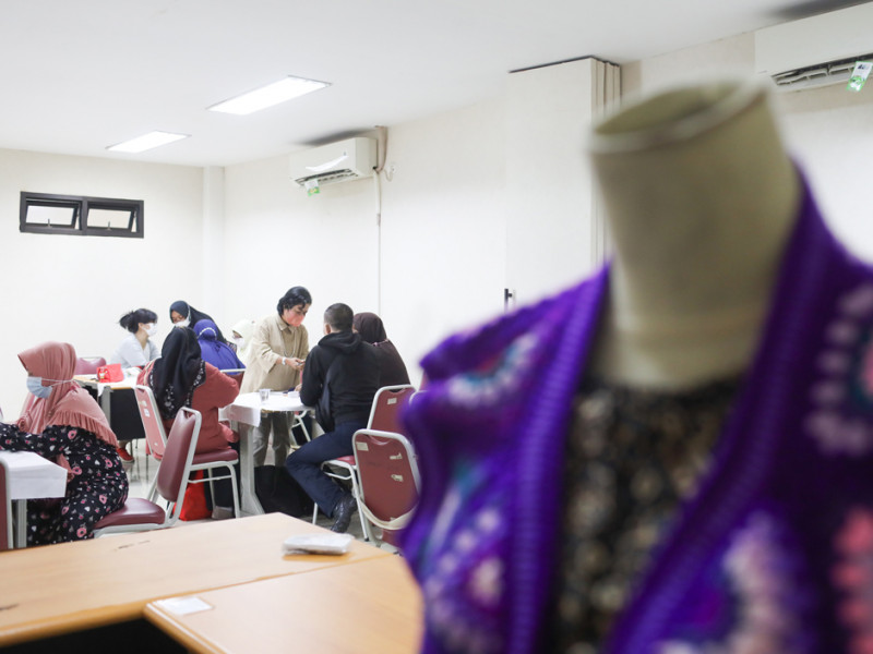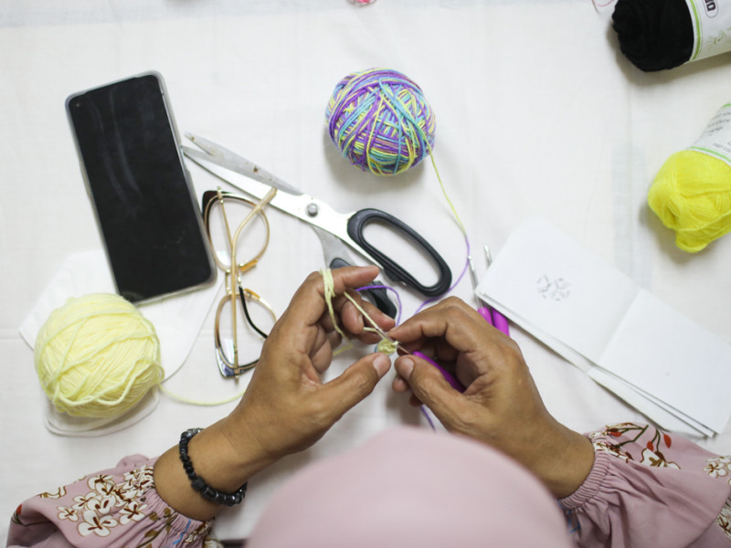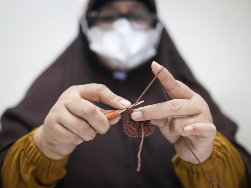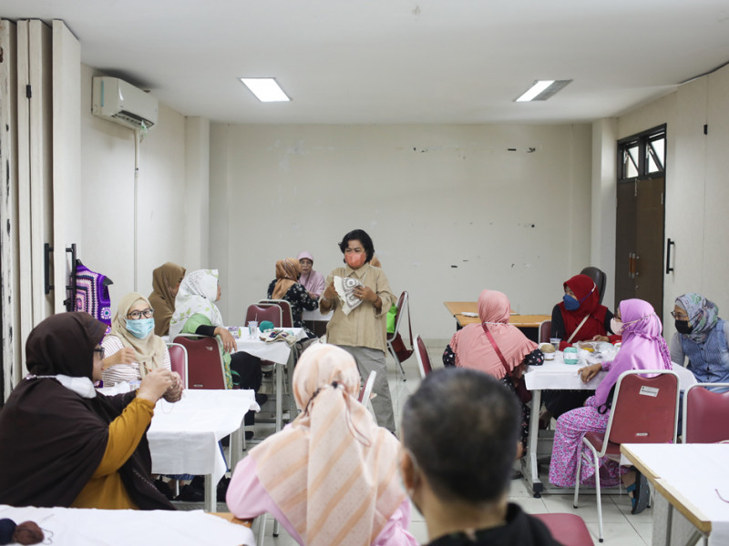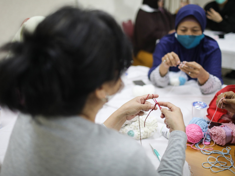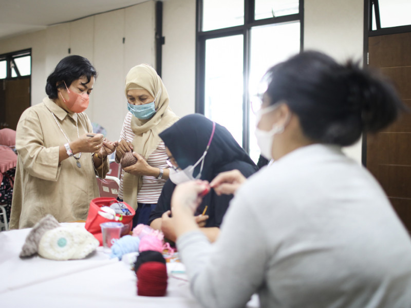 Suku Dinas Perindustrian, Perdagangan, Koperasi, Usaha Kecil dan Menengah (PPKUKM) Jakarta Pusat menggelar pelatihan membuat topi rajut atau granny bucket hat crochet di Tempat Kumpul Kreatif (TKK) Johar Baru, Jakarta Pusat, Senin (12/9). (Foto: Nugroho Sejati/beritajakarta.id)
