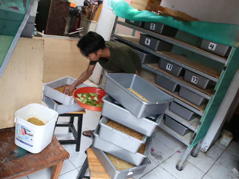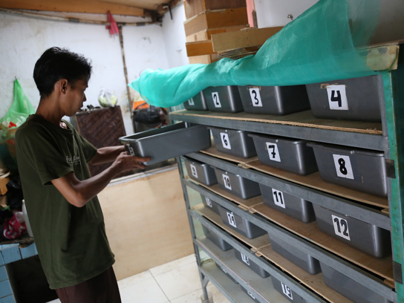 Ulat Hongkong dikenal sebagai pakan burung dan hewan peliharaan lainnya. Namun tahukah kalian, ulat Hongkong ternyata juga bermanfaat untuk mereduksi sampah organik rumah tangga seperti yang dilakukan Kahfi, warga RT 04/10, Kelurahan Pamerah, Kecamatan Palmerah, Jakarta Barat. (Foto: Reza Hapiz/beritajakarta.id)