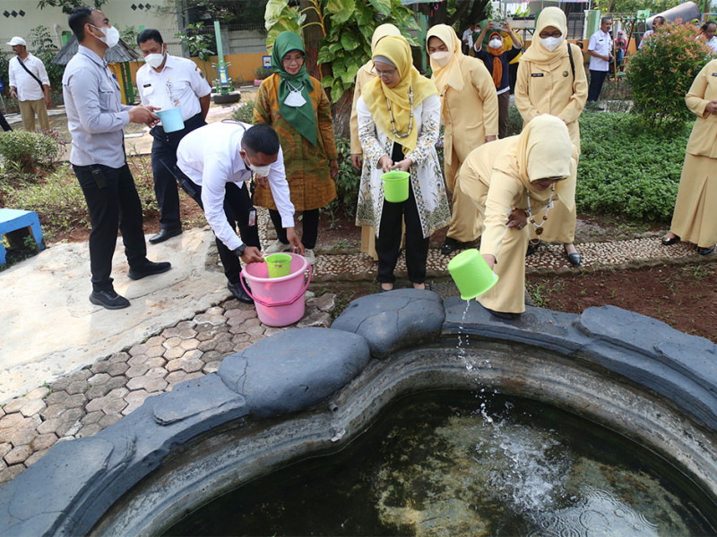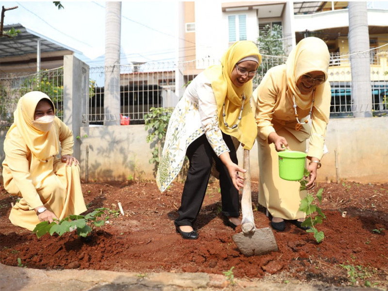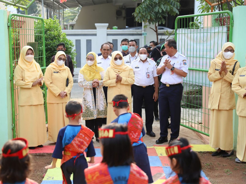 Dewan Pengurus Daerah Gabungan Organisasi Penyelenggara Taman Kanak-kanak Indonesia (DPD GOPTKI) Provinsi DKI Jakarta, melakukan kunjungan kerja ke Taman Kanak-kanak (TK) Dharma Siwi di Jalan Sunter Agung Utara, RT 03/18, Kelurahan Sunter Agung, Tanjung Priok, Jakarta Utara, Rabu (14/9). Selain meninjau fasilitas dan proses kegiatan di sekolah, jajaran DPD GOPTKI DKI Jakarta juga berkesempatan melakukan penanaman bibit pohon serta melakukan senam bersama. (Foto: Mochamad Tresna Suheryanto/beritajakarta.id)