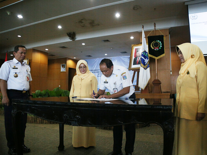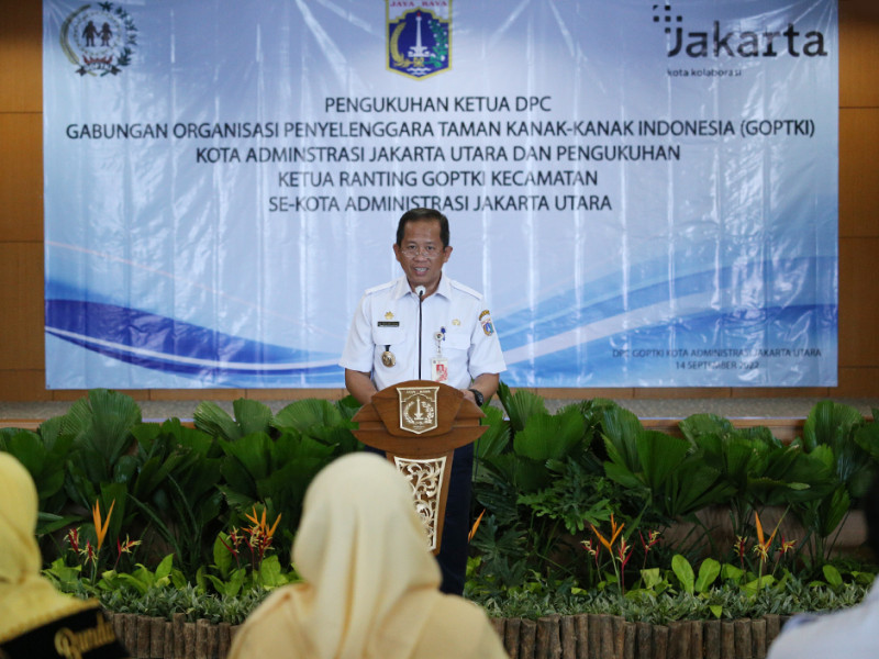 Ketua Pengurus Dewan Pimpinan Cabang Gabungan Organisasi Penyelenggara Taman Kanak-kanak Indonesia (DPC GOPTKI) Kota Jakarta Utara dan Ketua Ranting GOPTKI kecamatan se-Jakarta Utara, resmi dikukuhkan. Prosesi pengukuhan dilakukan langsung Ketua GOPTKI Provinsi DKI Jakarta bersama Wali Kota Jakarta Utara di kantor wali kota setempat, Rabu (14/9). (Foto: Mochamad Tresna Suheryanto/beritajakarta.id)