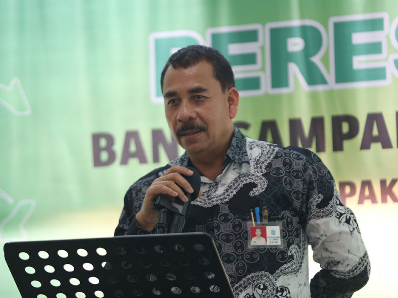 Kepala Seksi Perekonomian dan Pembangunan (Ekbang) Sekretariat Kota (Setko) Jakarta Selatan, Danil meresmikan Bank Sampah Apartemen Pakubuwono Terrace, Jalan Ciledug Raya, Kelurahan Cipulir, Kebayoran Lama, Kamis (15/9). (Foto: Reza Hapiz/beritajakarta.id)