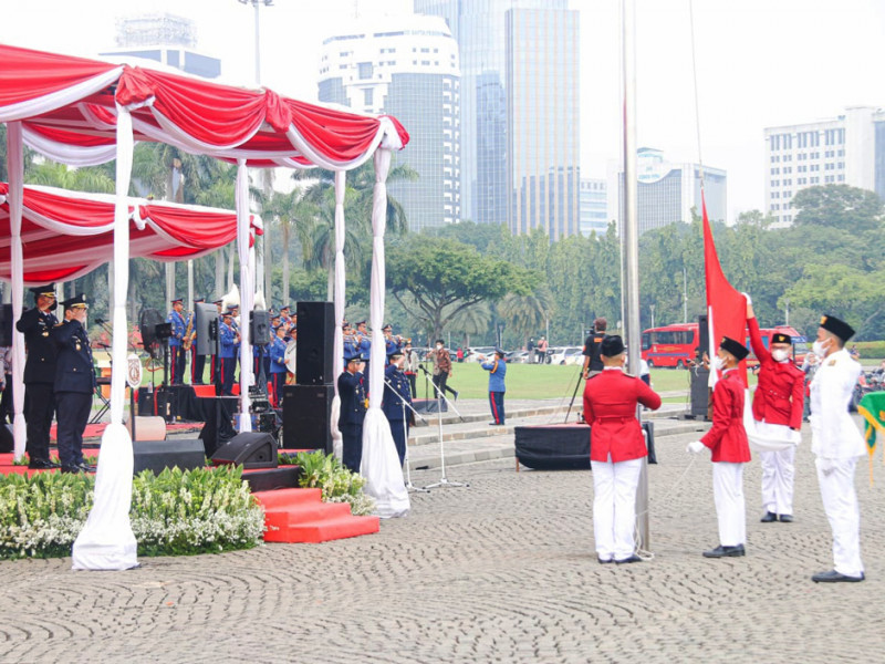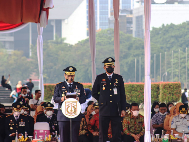 Wakil Gubernur DKI Jakarta, Ahmad Riza Patria bertindak sebagai Inspektur Upacara (Irup) Peringatan Hari Perhubungan Nasional (Harhubnas) Tingkat Provinsi DKI Jakarta Tahun 2022. Upacara berlangsung di kawasan Monumen Nasional (Monas), Jakarta Pusat, Sabtu (17/9). (Foto: Mochamad Tresna Suheryanto/beritajakarta.id)
