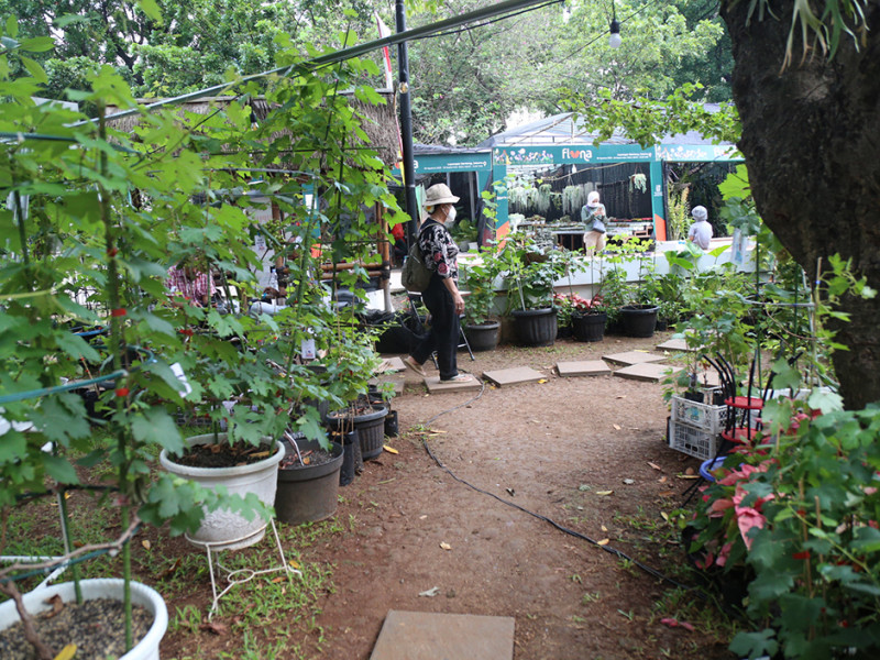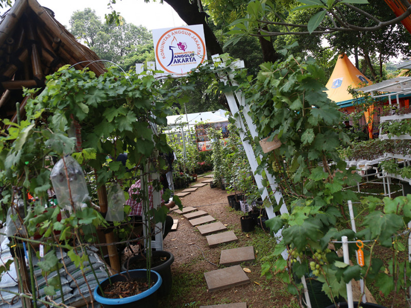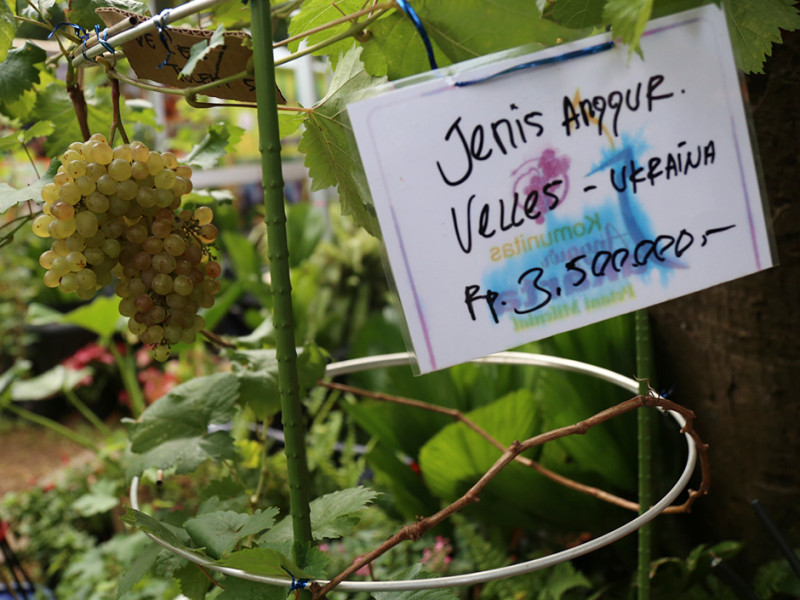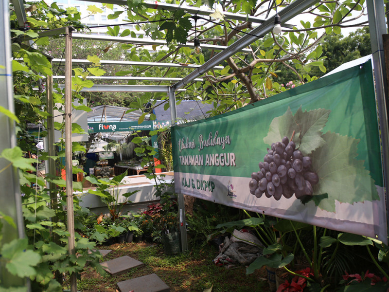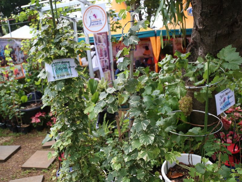 Pameran Flora dan Fauna (Flona) 2022 di Taman Lapangan Banteng, Jakarta Pusat diramaikan ratusan pelaku kewirausahaan bidang pertamanan dan hutan kota, salah satunya Komunitas Anggur Jakarta (KAJ). Booth KAJ menampilkan puluhan jenis tanaman anggur lokal maupun impor. (Foto: Mochamad Tresna Suheryanto/beritajakarta.id)