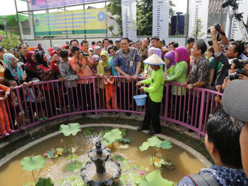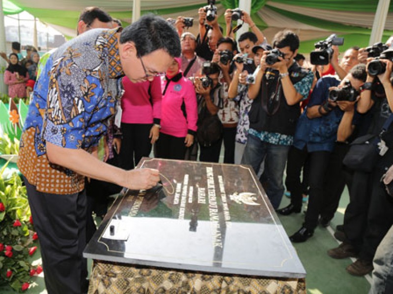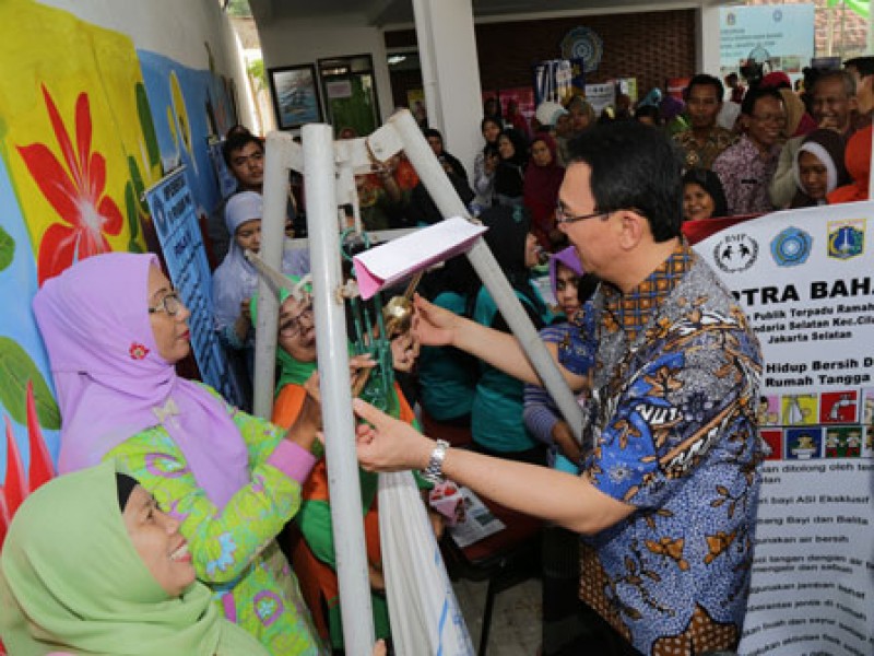 Gubernur DKI Jakarta, Basuki Tjahaja Purnama meresmikan Ruang Publik Terpadu Ramah Anak (RPTRA) Bahari di Jalan Bahari Raya RT 09/07, Kelurahan Gandaria Selatan, Kecamatan Cilandak, Jakarta Selatan (21/5/2015). RPTRA ini pengelolaannya akan diserahkan kepada kader-kader PKK. Selain taman, RPTRA juga dilengkapi dengan fasilitas bermain anak, sarana olahraga dan gedung yang bisa digunakan untuk menunjang kegiatan PAUD dan Posyandu. (Foto: Yopie / Beritajakarta.com)