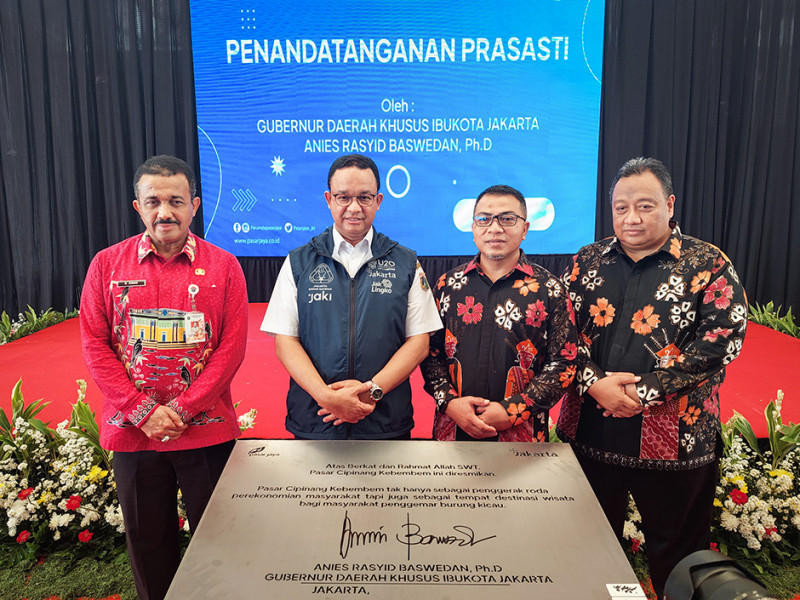 Gubernur DKI Jakarta, Anies Baswedan, meresmikan revitalisasi empat pasar yang dikelola Perusahaan Umum Daerah (Perumda) Pasar Jaya di Pasar Cipinang Kebembem, Pulo Gadung, Jakarta Timur, Kamis (22/9). Keempat pasar tersebut yaitu Pasar Cipinang Kebembem, Pasar Sawah Barat, Pasar Tanah Tinggi Poncol, dan Pasar Tebet Barat. (Foto: Nugroho Sejati/beritajakarta.id)