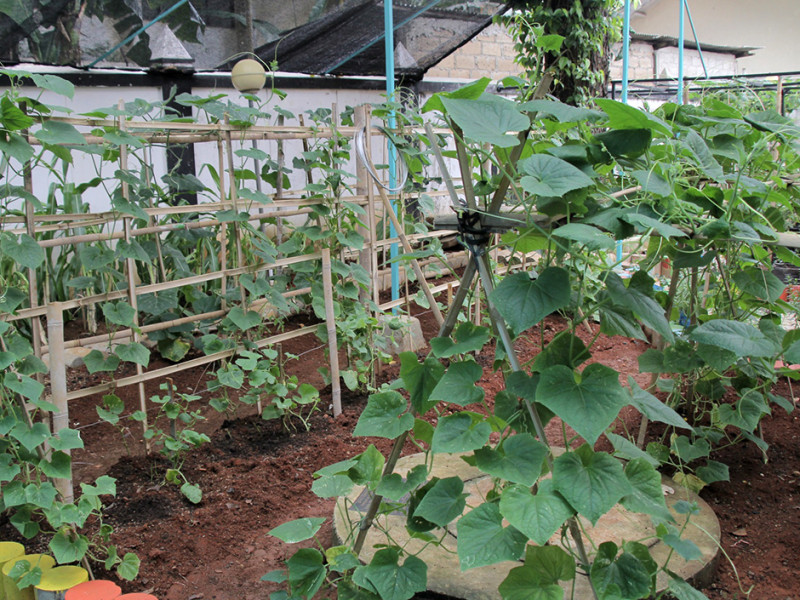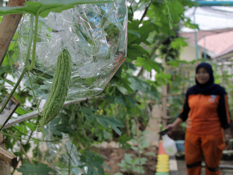 Lahan kosong di Kantor Kelurahan Lebak Bulus, Cilandak, Jakarta Selatan, dimanfaatkan menjadi Taman Hatinya PKK. Taman Hatinya PKK Lebak Bulus didirikan sebagai lahan pertanian perkotaan (urban farming) dengan ditanami beraneka sayuran dan tanaman produktif lainnya. Keberadaan taman ini sekaligus menjadi sarana edukasi bagi warga sekitar. (Foto: Reza Hapiz/beritajakarta.id)