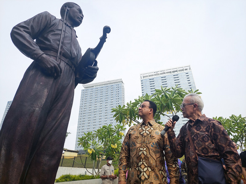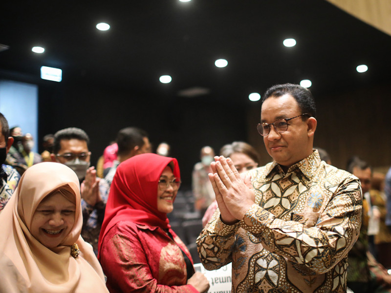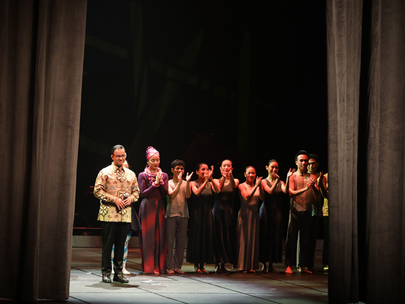Gubernur DKI Jakarta, Anies Baswedan, menyaksikan sekaligus menjadi penampil dalam pagelaran perdana di Graha Bhakti Budaya (GBB) usai revitalisasi Taman Ismail Marzuki, Jalan Cikini Raya 73, Menteng, Jakarta Pusat Jumat (23/9). Pagelaran perdana tersebut sekaligus menandai dibukanya kembali seluruh gedung di TIM untuk publik. (Foto: Nugroho Sejati/beritajakarta.id)