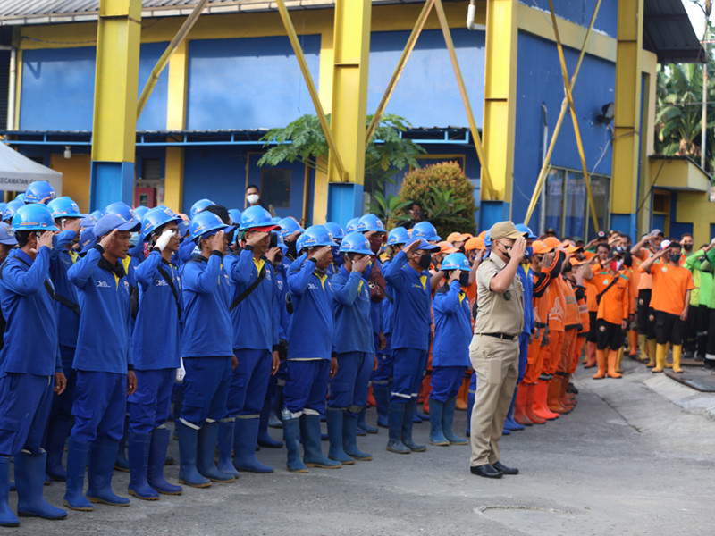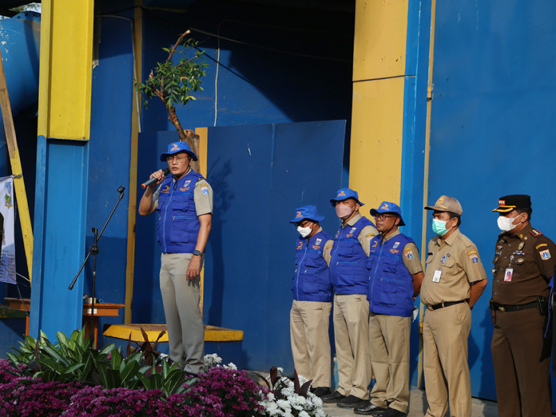Pemerintah Kota (Pemkot) Jakarta Pusat, Senin (26/9), melaksanakan program gerebek lumpur di Kali Cideng segmen RSUD Tarakan. Pencanganan (Kick off) gerebek lumpur dipimpin Wali Kota Jakarta Pusat, Dhany Sukma dengan diikuti ratusan personel lintas Organisasi Perangkat Daerah (OPD). (Foto: Reza Hapiz/beritajakarta.id)