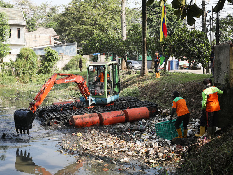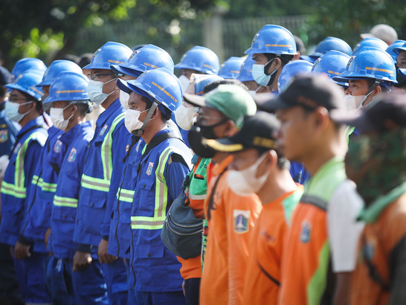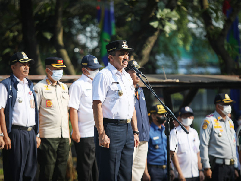 Wali Kota Jakarta Timur, Muhammad Anwar memimpin kick off Gerebek Lumpur di Agro Wisata Cilangkap, Cipayung, Jakarta Timur, Rabu (28/9). Ratusan personel gabungan lintas Organisasi Perangkat Daerah (OPD) dilibatkan dalam kegiatan ini. (Foto: Nugroho Sejati/beritajakarta.id)