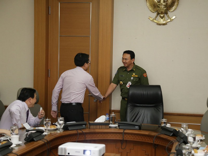 Gubernur DKI Jakarta menerima paparan dari Service Quality Center perihal perbaikan layanan publik di Balaikota DKI Jakarta, Senin, (25/05/2015). (Foto: Reza/beritajakarta.com)