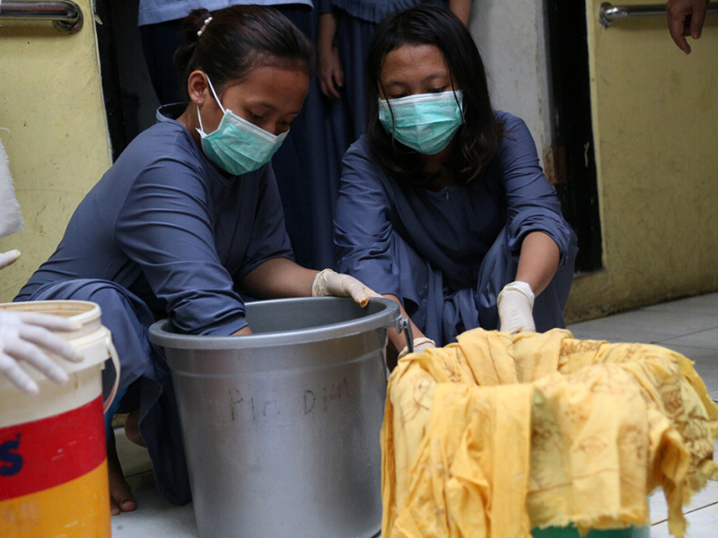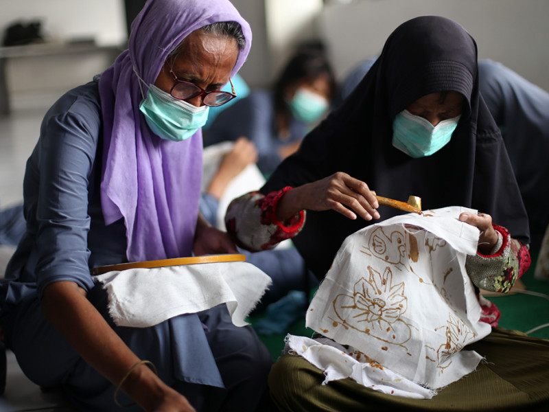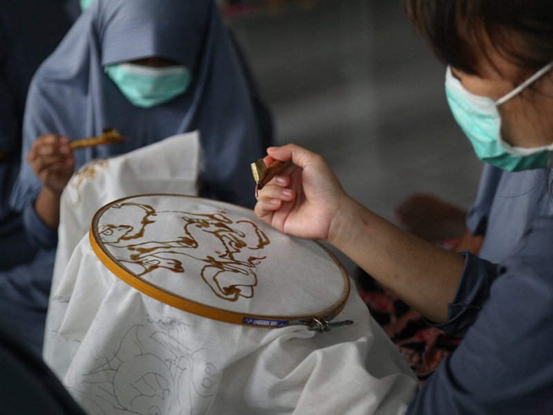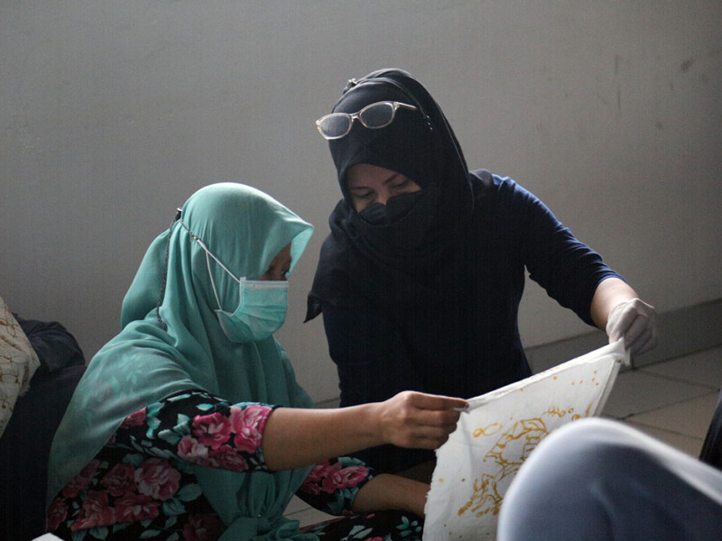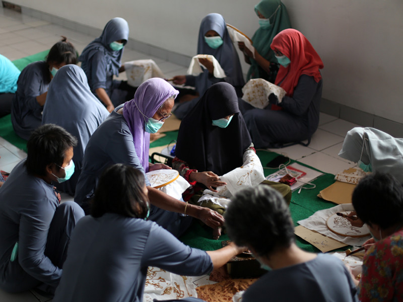 Warga binaan Panti Sosial Perlindungan (PSP) Bhakti Kasih di Jalan Dakota, Kebon Kosong, Kemayoran, Jakarta Pusat antusias mengikuti pelatihan membatik. Para peserta diajari membuat batik tulis dan juga teknik pewarnaan dengan teknik celup. (Foto: Mochamad Tresna Suheryanto/beritajakarta.id)