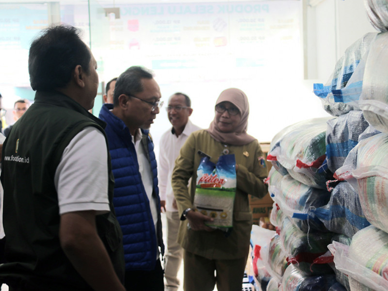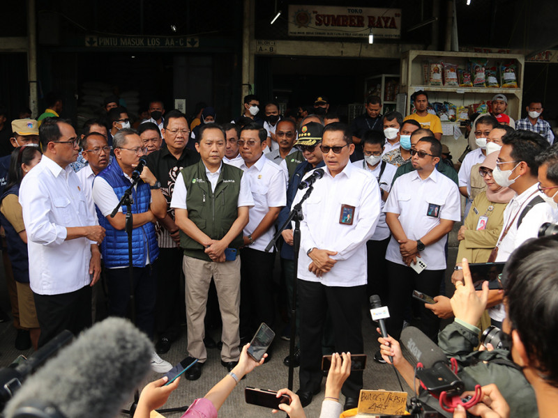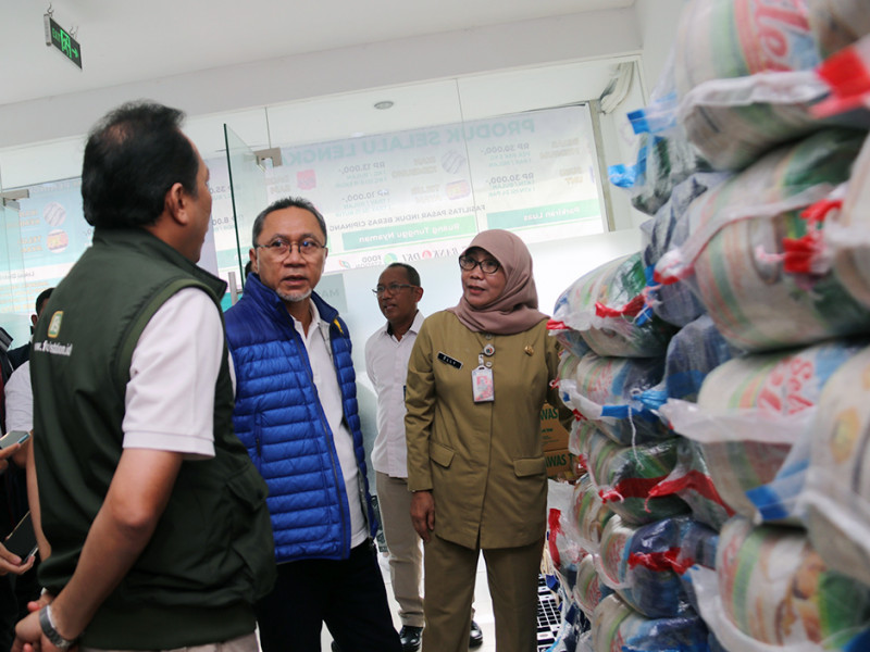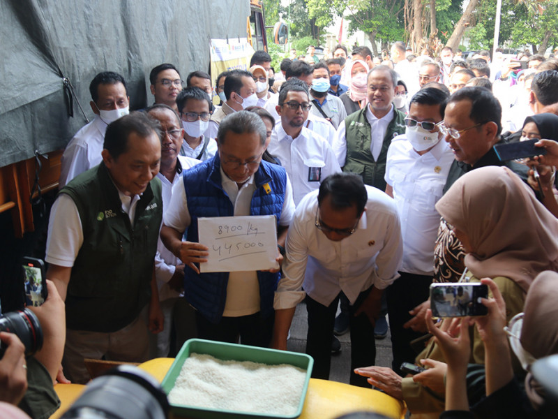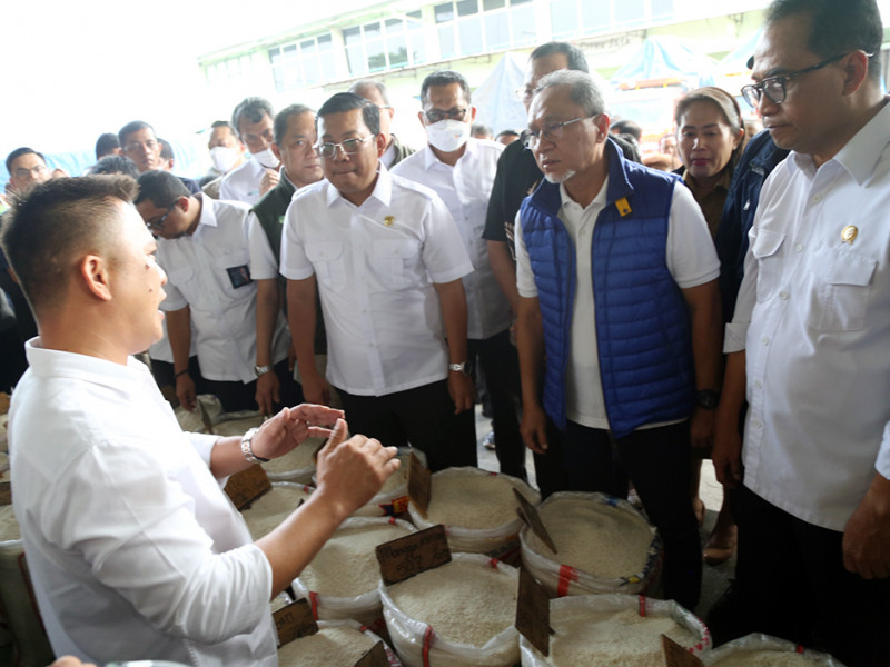 Pemerintah pusat bersama Pemerintah Provinsi (Pemprov) DKI Jakarta melakukan peninjauan Operasi Pasar Ketersediaan Pasokan dan Stabilitas Harga (KPSH) beras medium di Pasar Induk Beras Cipinang (PIBC), Jakarta Timur, Senin (3/10). Peninjauan dilakukan oleh Menteri Perdagangan RI, Zulkifli Hasan; Menteri Perhubungan RI, Budi Karya; Direktur Utama Perum Bulog, Budi Waseso; Kepala Badan Pangan Nasional, Arief Prasetyo Adi; Wakil Menteri Pertanian, Harvick Hasnul Qolbi; dan Kepala Dinas KPKP DKI Jakarta, Suharini Eliawati. (Foto: Reza Hapiz/beritajakarta.id)