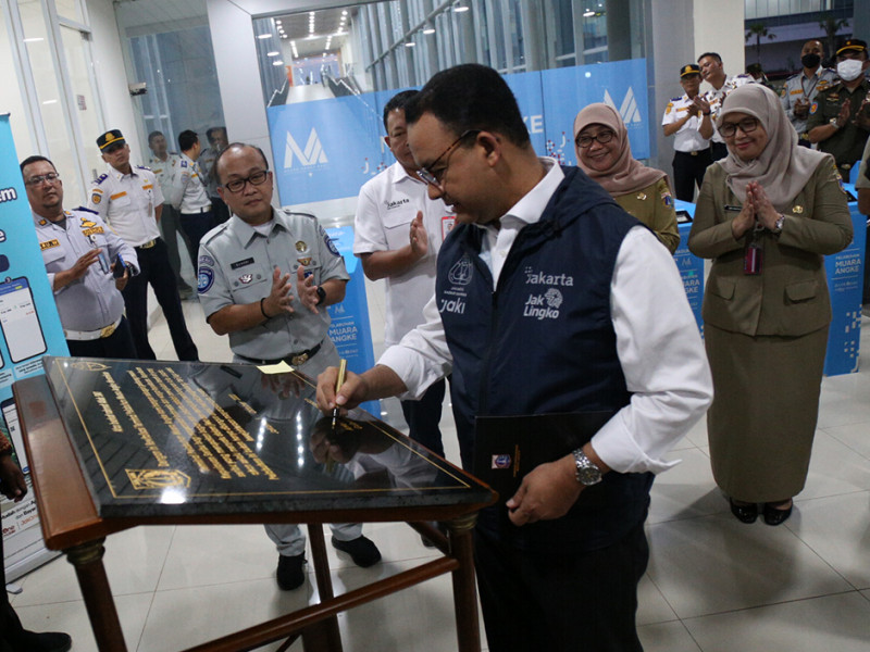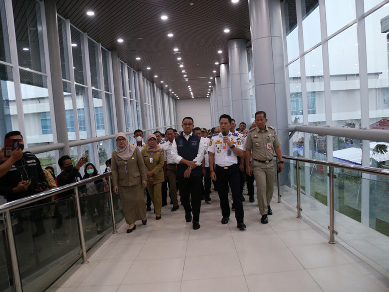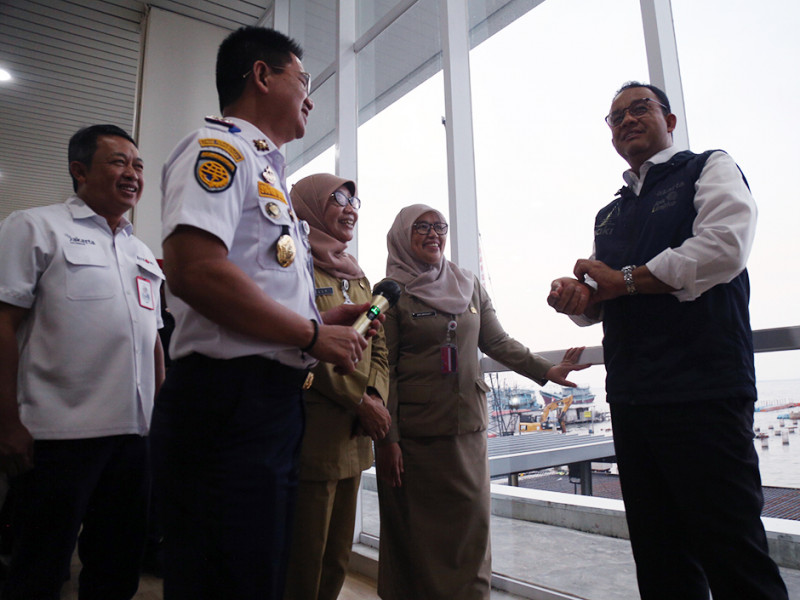 Gubernur DKI Jakarta, Anies Baswedan meresmikan revitalisasi Pelabuhan Muara Angke, Pluit, Penjaringan, Jakarta Utara, Senin (3/10). Kehadiran pelabuhan ini diharapkan dapat memfasilitasi kebutuhan mobilitas warga kepulauan ke daratan dan begitu pula sebaliknya. Pelabuhan seluas 6.700 m² tersebut juga dilengkapi sejumlah fasilitas seperti ramp, lift, eskalator, dan toilet yang ramah bagi penyandang disabilitas. (Foto: Mochamad Tresna Suheryanto/beritajakarta.id)