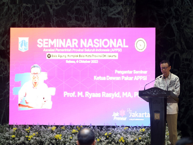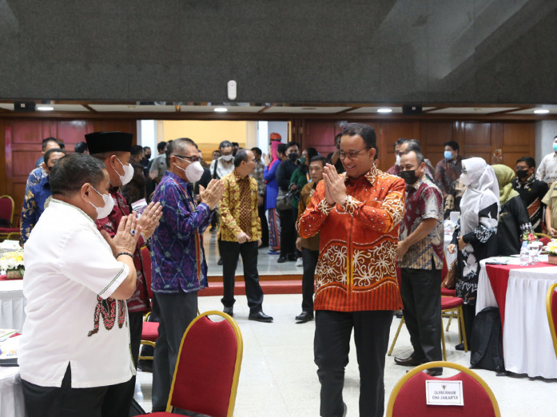 Gubernur DKI Jakarta, Anies Baswedan membuka seminar nasional yang diselenggarakan oleh Asosiasi Pemerintah Provinsi Seluruh Indonesia (APPSI) di Balai Agung, Balai Kota, Jakarta Pusat, Selasa (4/10). Seminar bertema “Kerja Sama Antardaerah dalam Meningkatkan Daya Saing dan Pemberdayaan UMKM\" ini bertujuan memperoleh gambaran model serta merumuskan strategi kerja sama kemitraan dengan UMKM yang telah dilakukan oleh pemerintah daerah guna meningkatkan daya saing. (Foto: Reza Hapiz/beritajakarta.id)