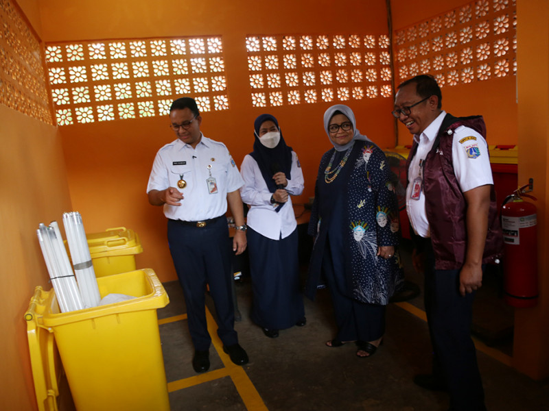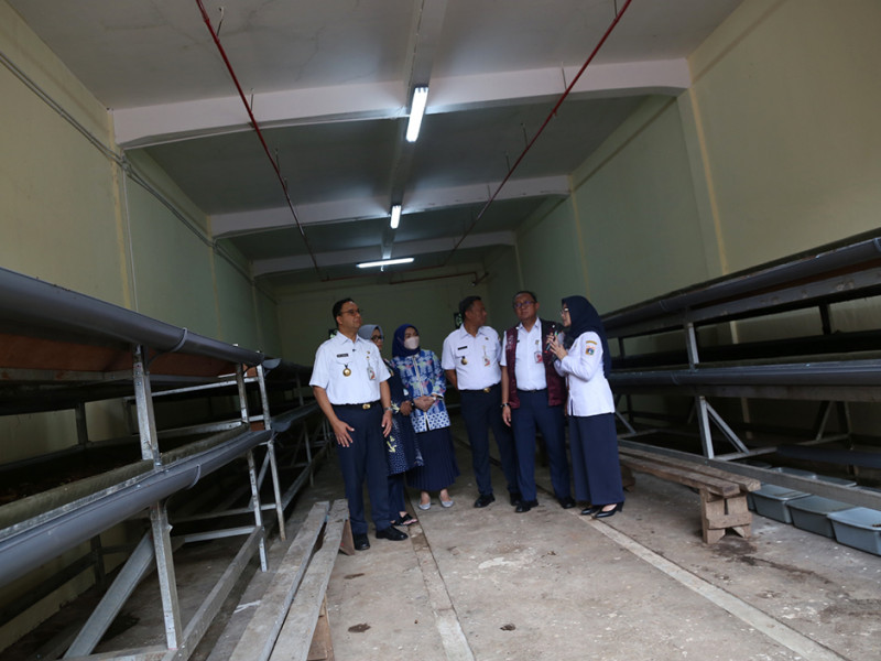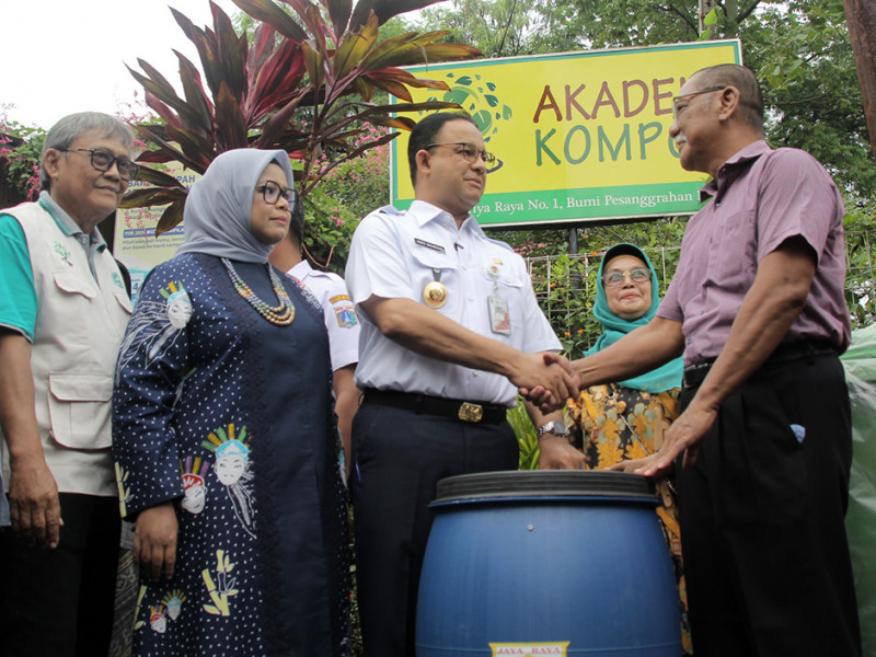 Gubernur DKI Jakarta, Anies Baswedan berkunjung ke Akademi Kompos dan Jakarta Recycling Center (JRC) sebagai Pusat Edukasi Jakarta Sadar Sampah di Pesanggrahan, Jakarta Selatan, Rabu (5/10). Pusat Edukasi Jakarta Sadar Sampah ini mengintegrasikan pemilahan sampah di sumber, pengelolaan sampah B3 rumah tangga, TPS 3R, pusat daur ulang, biokonversi maggot BSF, dan komposting. (Foto: Reza Hapiz/beritajakarta.id)