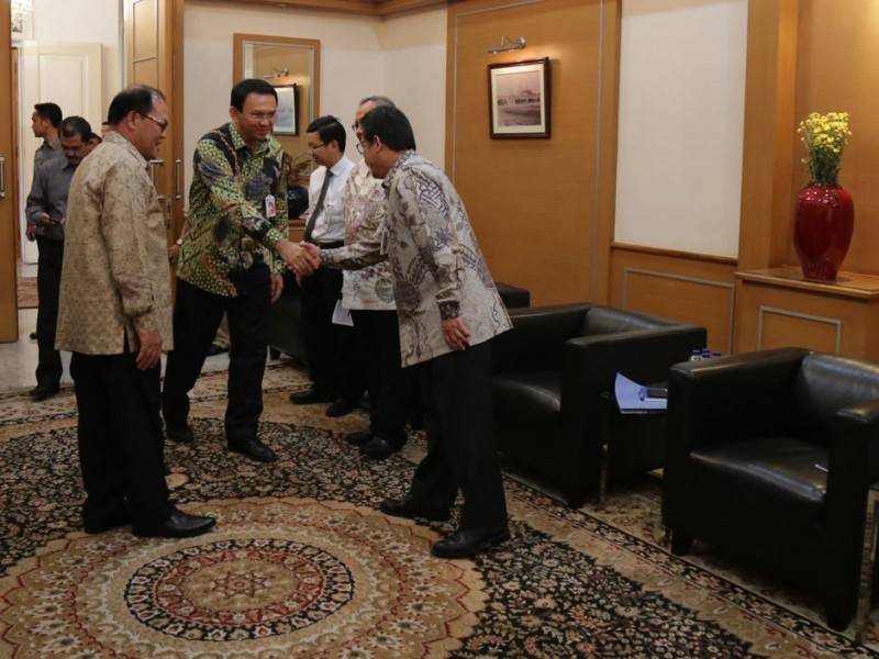 Gubernur DKI Jakarta, Basuki Tjahaja Purnama menerima Deputi Gubernur Bank Indonesia, Hendar di Balaikota DKI Jakarta, Rabu (27/05/2015). Dalam pertemuan tersebut Basuki menerima laporan terkait rencana pelaksanaan launching Kantor Perwakilan Bank Indonesia di Provinsi DKI Jakarta. (Foto: Reza / Beritajakarta.com)