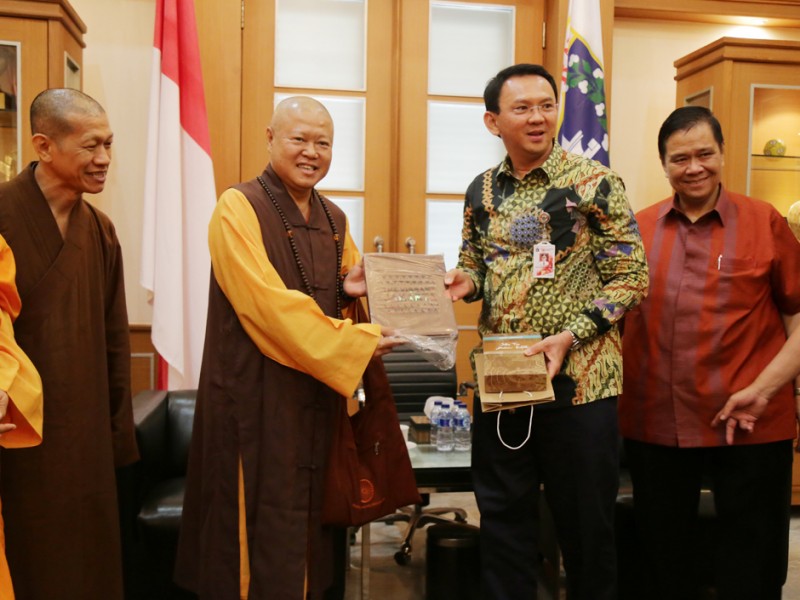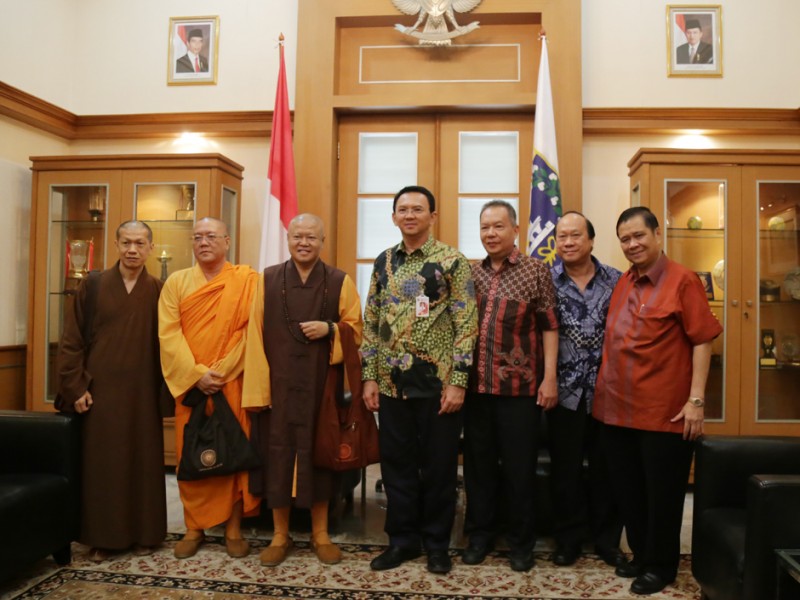 Gubernur DKI Jakarta, Basuki Tjahaja Purnama menerima panitia Hari Raya Waisak Wihara Ekayana Arama (Indonesia Buddhist Centre) di Balaikota DKI Jakarta, Rabu (27/05/2015). Dalam pertemuan ini Basuki mendapatkan undangan untuk bisa hadir dalam acara memperingati Hari Raya Waisak 2559 yang jatuh pada tanggal 2 Juni mendatang. (Foto: Reza/beritajakarta.com)