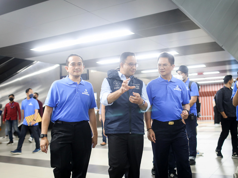 Asyiiik... Tarif integrasi antarmoda transportasi JakLingko sudah bisa dinikmati mulai hari ini loh! Pemberlakuan tarif integrasi tersebut diresmikan Gubernur DKI Jakarta, Anies Baswedan di Stasiun MRT ASEAN, Kebayoran Baru, Jakarta Selatan, Jumat (7/10). Dengan skema baru ini, pelanggan akan dikenai tarif yang lebih terjangkau saat melakukan perjalanan menggunakan lebih dari satu moda. (Foto: Nugroho Sejati/beritajakarta.id)