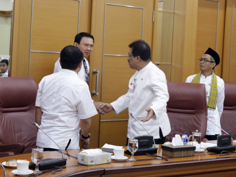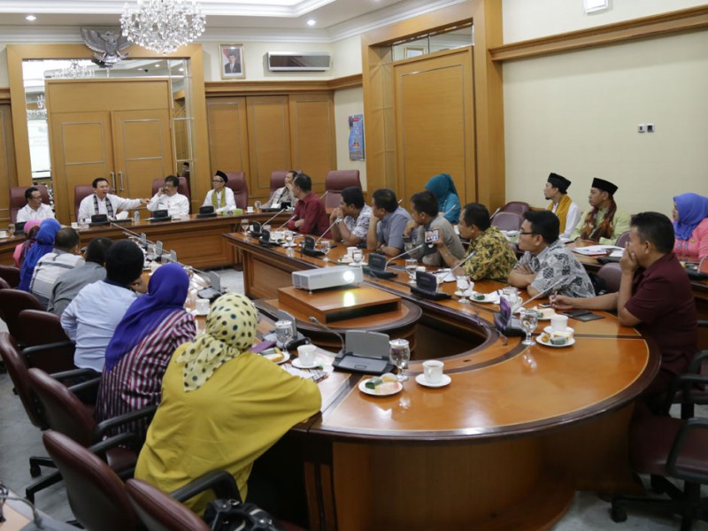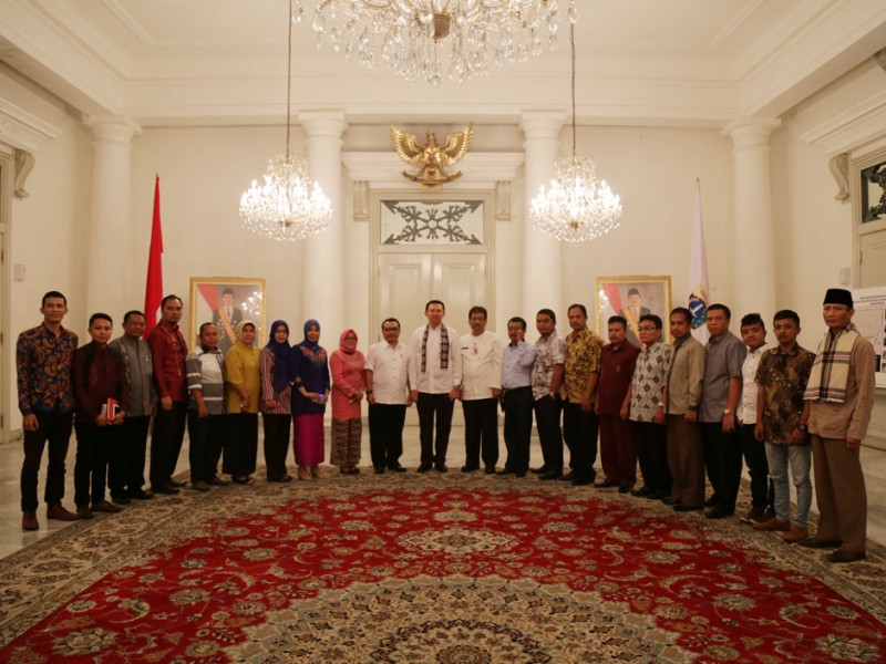 Gubernur DKI Jakarta, Basuki Tjahaja Purnama menerima kunjungan mahasiswa Pasca Sarjana Universitas Negeri Gorontalo di Balaikota DKI Jakarta, Jumat (29/05/2015). Kunjungan dilakukan dalam rangka studi banding terkait regulasi kebijakan Pemerintah Daerah, mengenai besaran gaji dan tunjangan pejabat serta aparatur di lingkungan Pemprov DKI Jakarta.(Foto : Reza/Beritajakarta.com)