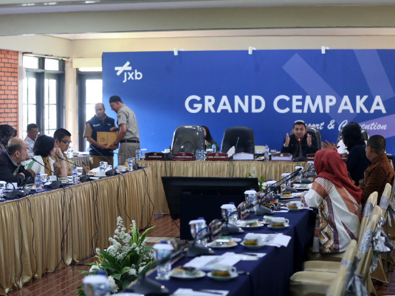 Dewan Perwakilan Rakyat Daerah (DPRD) DKI Jakarta mengadakan rapat bersama jajaran eksekutif di Grand Cempaka Resort and Convention, Cipayung, Bogor, Jawa Barat, Senin (10/10). Rapat yang diadakan di tiap komisi ini membahas serta mendalami rancangan perubahan Kebijakan Umum Anggaran Prioritas dan Plafon Anggaran Sementara (KUA-PPAS) Anggaran dan Pendapatan Belanja Daerah (APBD) Tahun Anggaran 2022. (Foto: Reza Hapiz/beritajakarta.id)