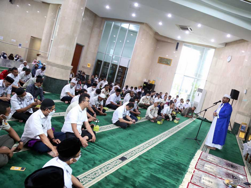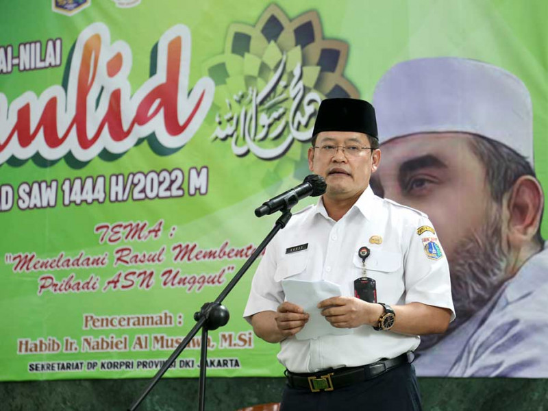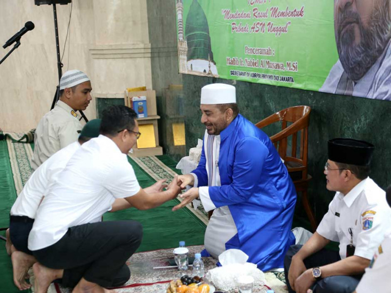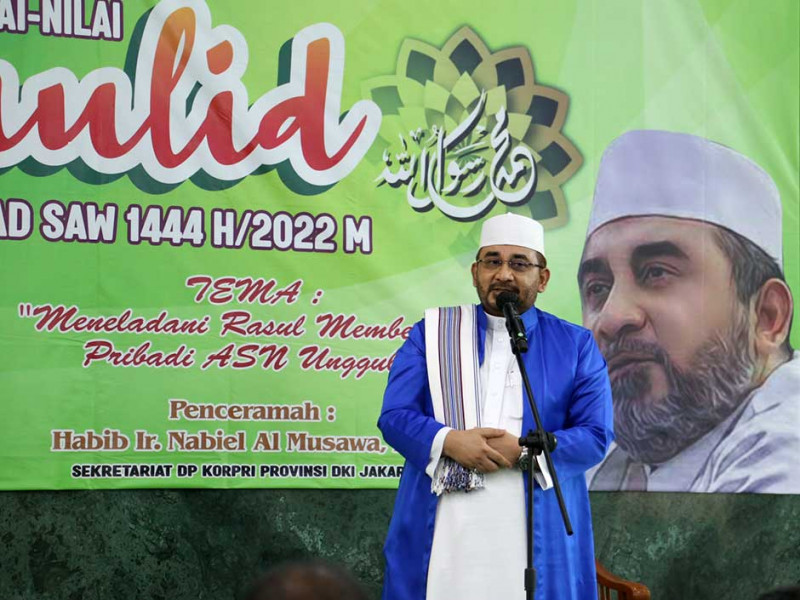 Korps Pegawai Republik Indonesia (Korpri) DKI Jakarta mengadakan Aktualisasi Nilai-nilai Keagaman dalam rangka memperingati Maulid Nabi Muhammad SAW 1444 H/2022 Masehi di Masjid Fatahillah, Balai Kota Provinsi DKI Jakarta, Rabu (12/10). Kegiatan bertema \"Meneladani Rasul Membentuk Pribadi ASN Unggul\" ini menghadirkan Habib Nabiel Al Musawa sebagai penceramah. (Foto: Reza Hapiz/beritajakarta.id)