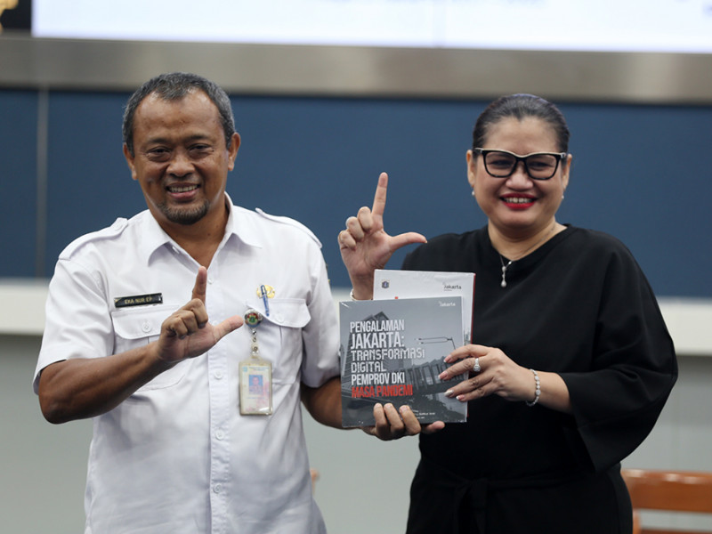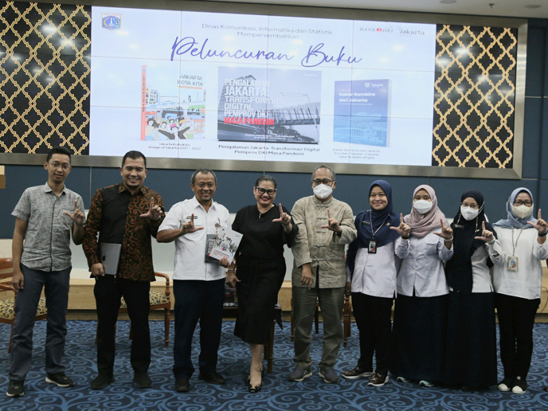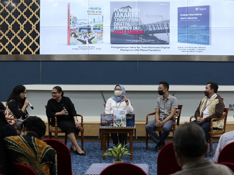 Pemerintah Provinsi (Pemprov) DKI Jakarta melalui Dinas Komunikasi, Informatika dan Statistik (Kominfotik) meluncurkan tiga buku sekaligus tentang Pengalaman Jakarta: Transformasi Digital Pemprov DKI Masa Pandemi, Jakarta Kota Kita dan Kabar Gembira dari Jakarta, Rabu (12/10). Adapun ketiga buku tersebut berisi rekam jejak serta pencapaian Jakarta selama lima tahun yang disajikan dalam bentuk tulisan dan visualisasi grafik statistik. (Foto: Reza Hapiz/beritajakarta.id)