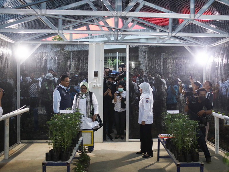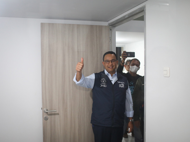 Gubernur DKI Jakarta, Anies Baswedan, meresmikan Kampung Susun Bayam di Jalan RE Martadinata, Tanjung Priok, Jakarta Utara, Rabu (12/10). Peresmian dilakukan secara simbolis bersama PT Direktur Utama Jakarta Propertindo (Jakpro), Widi Amanasto; Kepala Dinas Perumahan Rakyat dan Kawasan Permukiman DKI Jakarta, Sarjoko; serta perwakilan warga Kampung Susun Bayam. (Foto: Nugroho Sejati/beritajakarta.id)