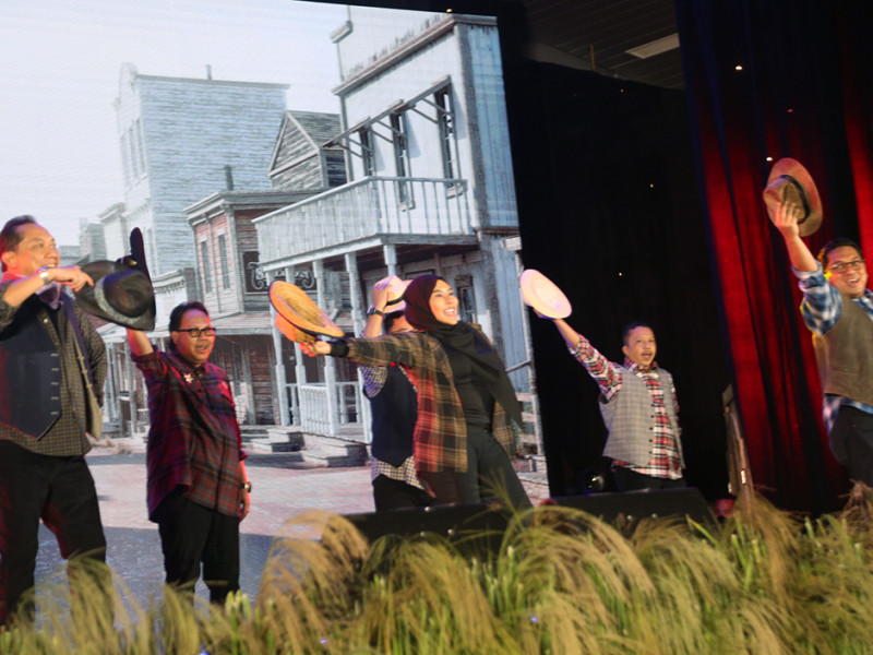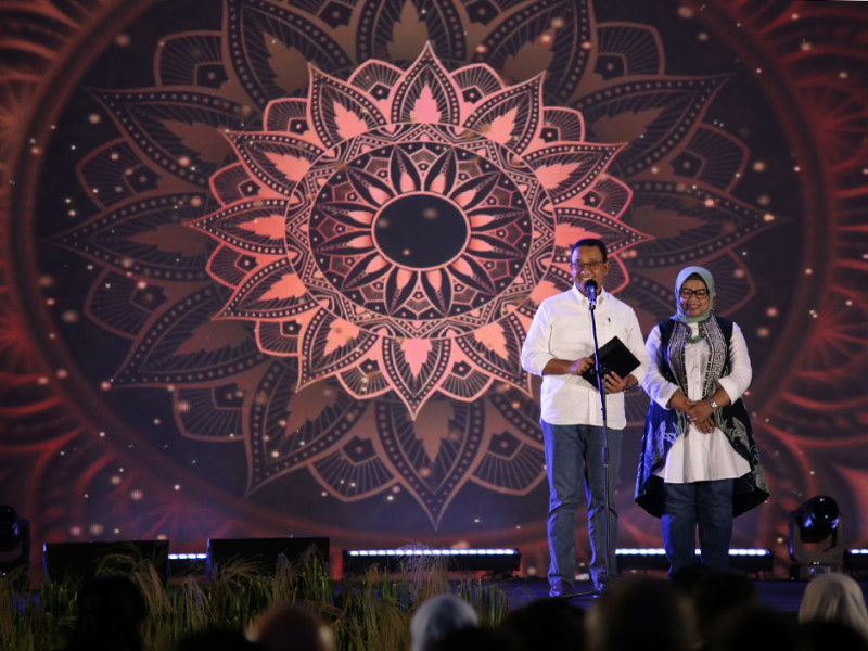 Gubernur DKI Jakarta, Anies Baswedan beserta Wakil Gubernur DKI Jakarta, Ahmad Riza Patria mengadakan silaturahmi dengan kepala Organisasi Perangkat Daerah (OPD) dan direksi Badan Usaha Milik Daerah (BUMD) di Hall Jakarta Equestrian Park, Pulomas, Jakarta Timur, Rabu (12/10). Dalam kegiatan tersebut, Anies dibuat takjub dengan penampilan kepala OPD yang membawakan opera tentang perjalanan dirinya saat masih mengenyam pendidikan di bangku kuliah hingga menjadi Gubernur DKI Jakarta. (Foto: Mochamad Tresna Suheryanto/beritajakarta.id)