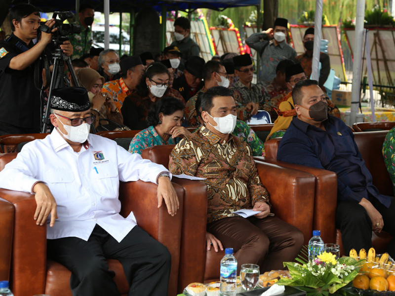 Wakil Gubernur DKI Jakarta, Ahmad Riza Patria meluncurkan Kampung Kerukunan Tingkat Provinsi DKI Jakarta di Taman Angsa, Jalan Gudang Peluru Barat, Kelurahan Kebon Baru, Kecamatan Tebet, Jakarta Selatan, Kamis (13/10). Dalam kegiatan ini, lima kelurahan dari tiap wilayah kota diresmikan sebagai kampung percontohan program tersebut. (Foto: Reza Hapiz/beritajakarta.id)