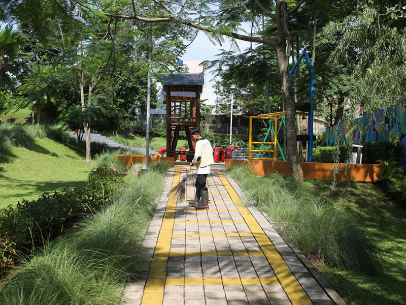 Taman Maju Bersama (TMB) Delonix menjadi ruang bermain favorit warga di sekitar Jalan Tipar, Kelurahan Pekayon, Pasar Rebo, Jakarta Timur. Taman yang memiliki luas kurang lebih 8.200 meter ini juga dipilih sebagai lokasi peresmian 100 TMB oleh Gubernur DKI Jakarta, Anies Baswedan, pada Rabu (12/10) lalu. (Foto: Nugroho Sejati/beritajakarta.id)