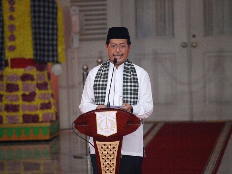 Sekretaris Daerah (Sekda) Provinsi DKI Jakarta, Marullah Matali mengucapkan terima kasih kepada Gubernur DKI Jakarta, Anies Baswedan dan Wakil Gubernur DKI Jakarta, Ahmad Riza Patria. Hal tersebut disampaikan saat digelarnya acara perpisahan gubernur dan wagub bersama Aparatur Sipil Negara (ASN) Pemprov DKI di Pendopo Balai Kota pada Jumat (14/10). (Foto: Mochamad Tresna Suheryanto & Reza Hapiz/beritajakarta.id)