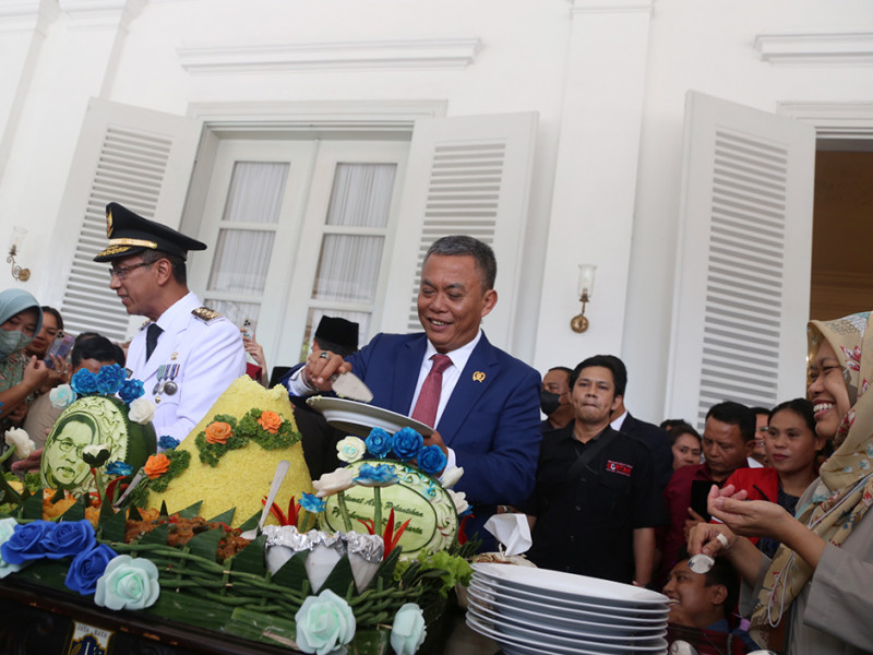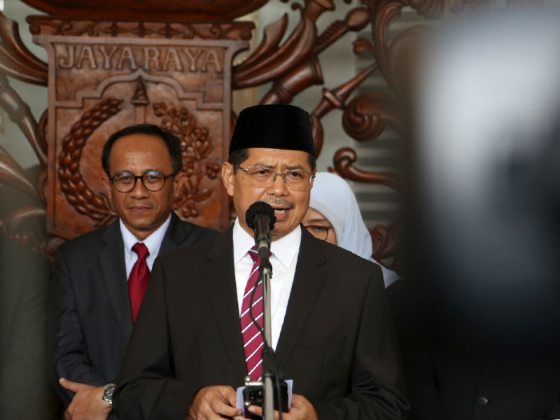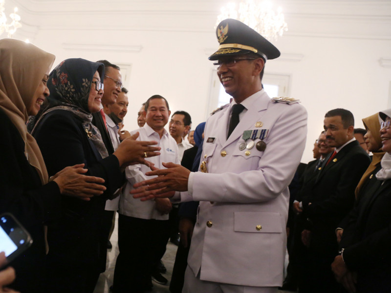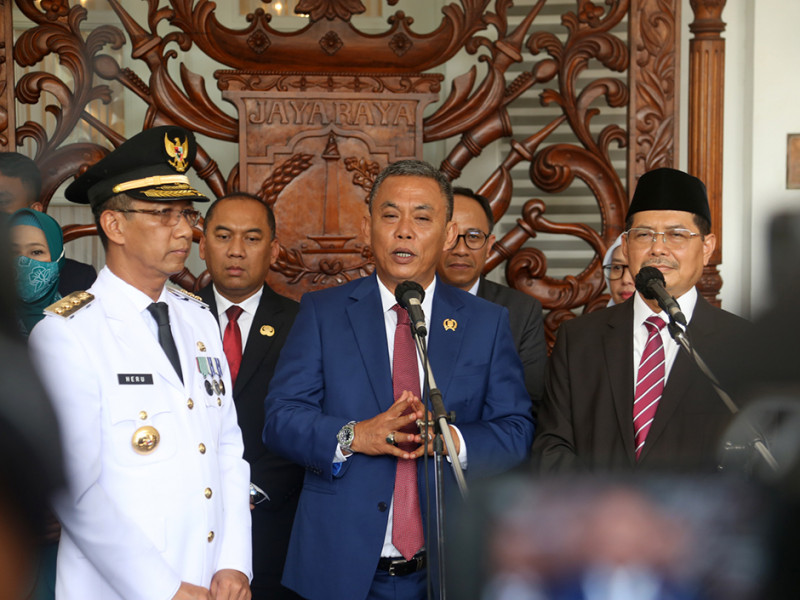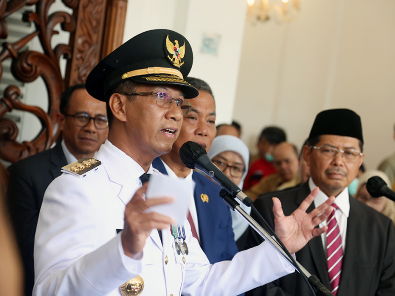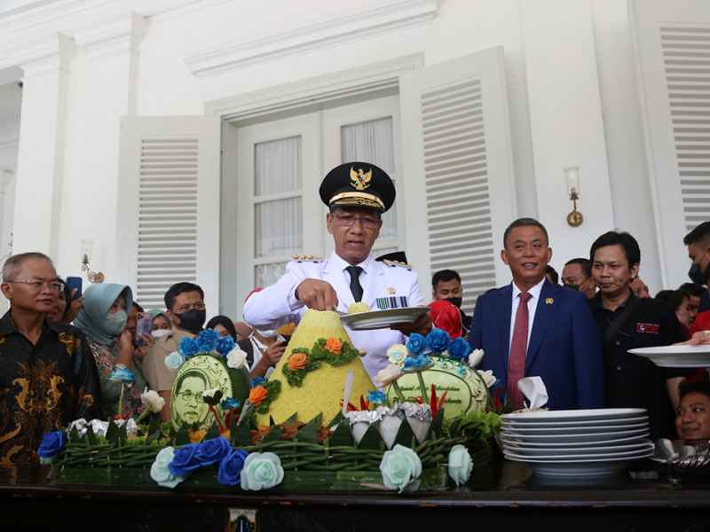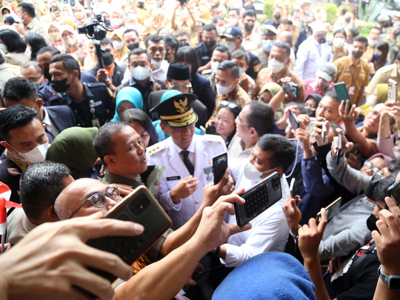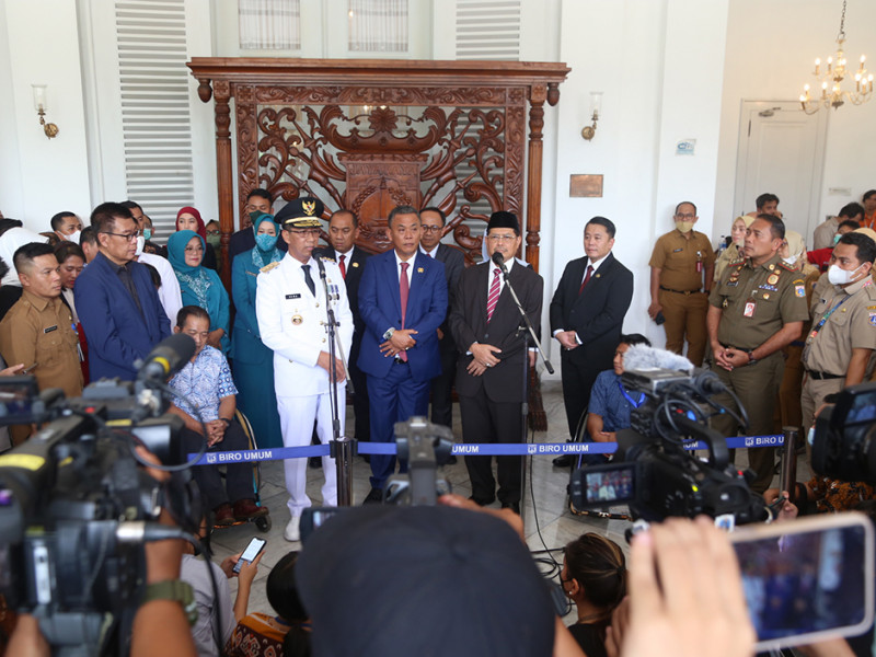 Usai dilantik sebagai Penjabat (Pj) Gubernur DKI Jakarta, Heru Budi Hartono langsung disambut hangat seluruh Aparatur Sipil Negara (ASN) Pemprov DKI Jakarta di Pendopo Gedung Balai Kota, Jakarta Pusat, Senin (17/10). Acara penyambutan turut dihadiri Ketua DPRD DKI Jakarta, Prasetio Edi Marsudi dan Sekretaris Daerah (Sekda) DKI Jakarta, Marullah Matali. (Reza Hapiz/beritajakarta.id)
