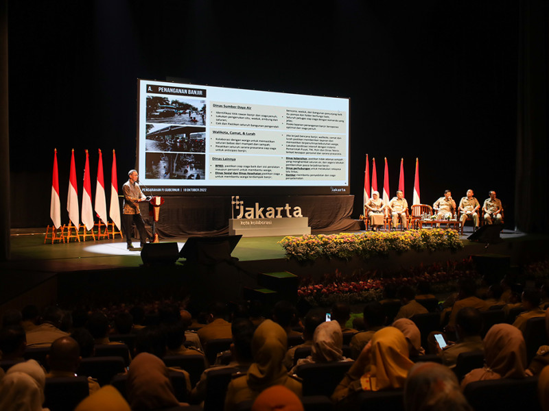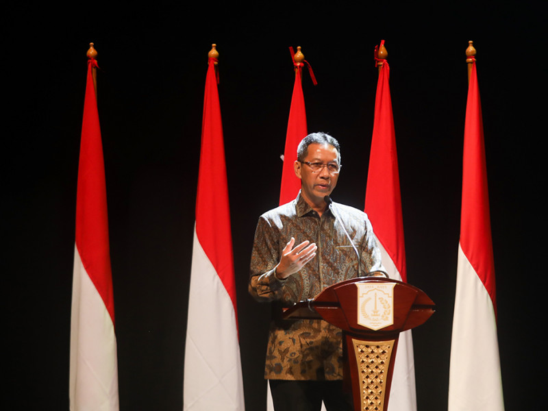 Penjabat (Pj) Gubernur DKI Jakarta, Heru Budi Hartono, memberikan arahan kepada pejabat di lingkungan Pemerintah Provinsi DKI Jakarta di Graha Bhakti Budaya Taman Ismail Marzuki (TIM), Jakarta Pusat, Selasa (18/10). Pengarahan diikuti ratusan peserta yang terdiri dari kepala Organisasi Perangkat Daerah (OPD), wali kota dan bupati, camat, serta lurah se-DKI Jakarta. (Foto: Nugroho Sejati/beritajakarta.id)