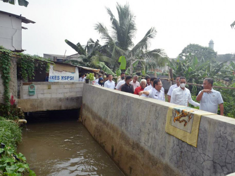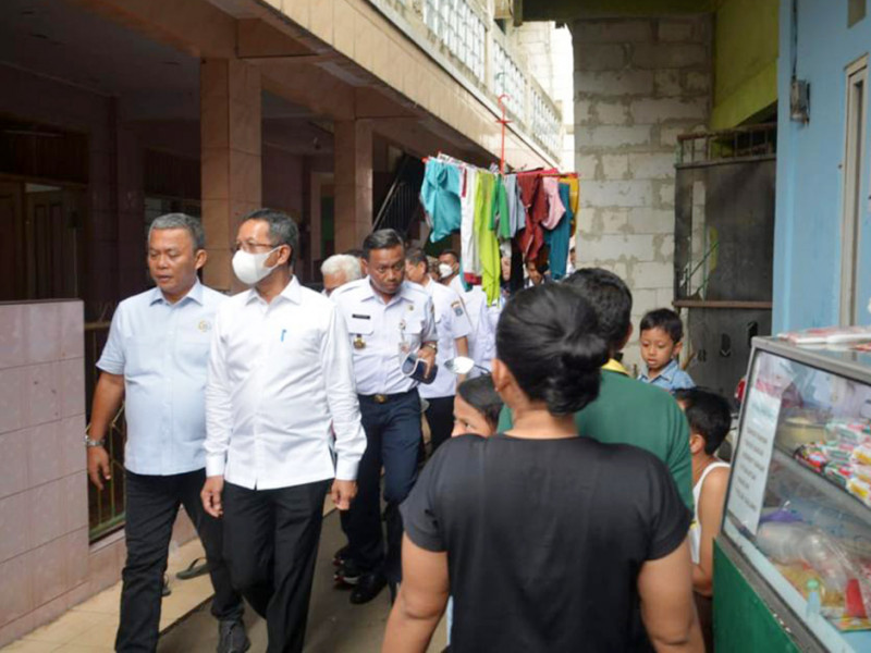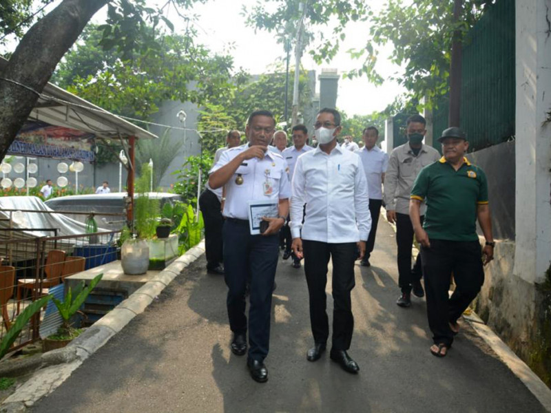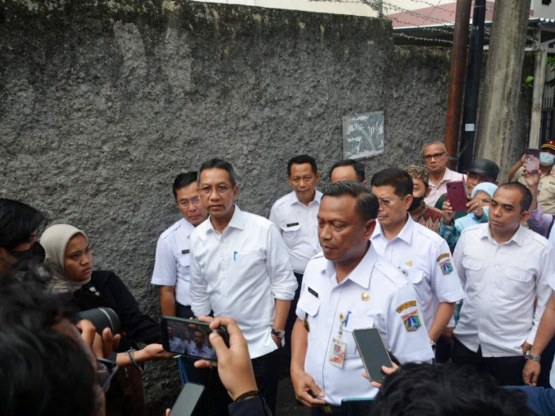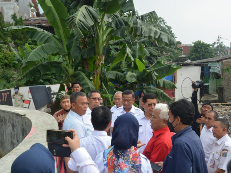 Penjabat (Pj) Gubernur DKI Jakarta, Heru Budi Hartono bersama Ketua DPRD DKI Jakarta, Prasetyo Edi Marsudi, meninjau kondisi tanggul Kali Pulo di RT 04/06, Kelurahan Jati Padang, Pasar Minggu, Jakarta Selatan, Rabu (19/10). Peninjauan dilakukan untuk melihat secara langsung kondisi permukiman warga di Jati Padang yang kerap tergenang saat hujan turun. (Foto: Mochamad Tresna Suheryanto/beritajakarta.id)