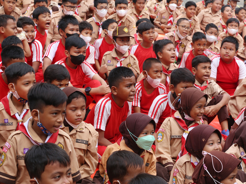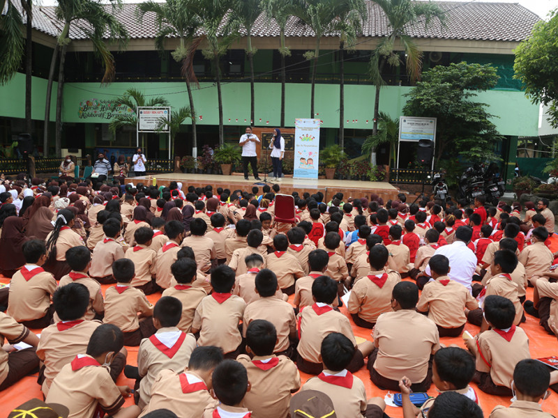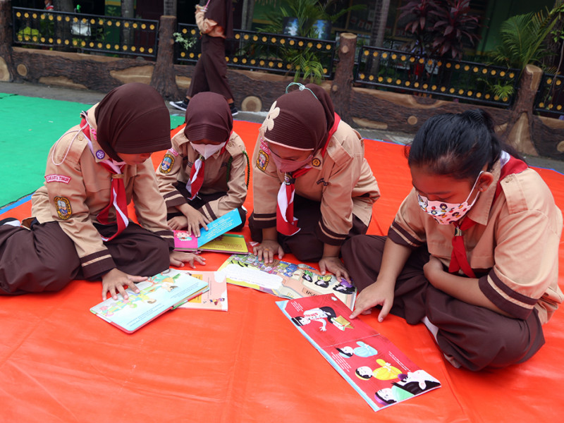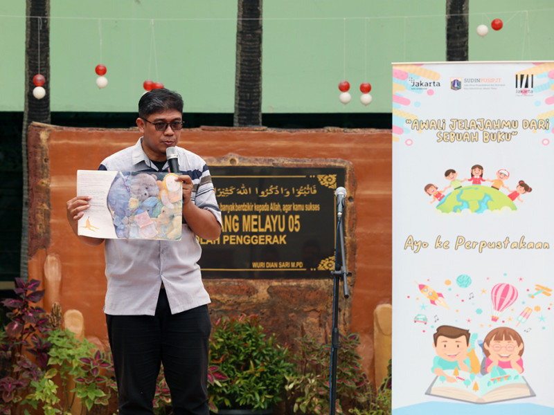 Suku Dinas Perpustakaan dan Kearsipan (Sudin Pusip) Jakarta Timur mengadakan kegiatan Wisata Literasi di Sekolah Dasar Negeri (SDN) 05 Cipinang Melayu, Jalan Raya Kalimalang, RT 01/10, Kelurahan Cipinang Melayu, Makasar, Rabu (19/10). Wisata literasi ini diisi dengan kegiatan menarik seperti pengenalan perpustakaan daerah, pendidikan pemustakaan dan layanan perpustakaan keliling. (Foto: Reza Hapiz/beritajakarta.id)