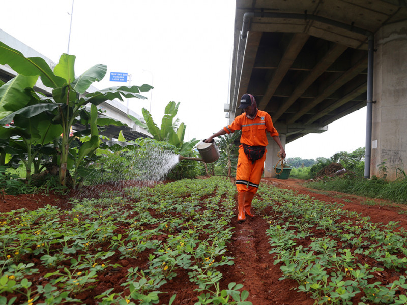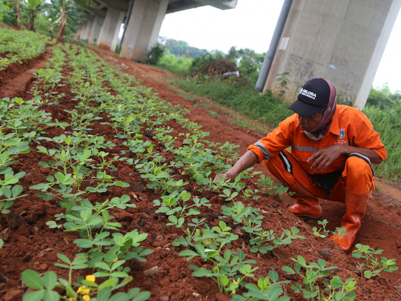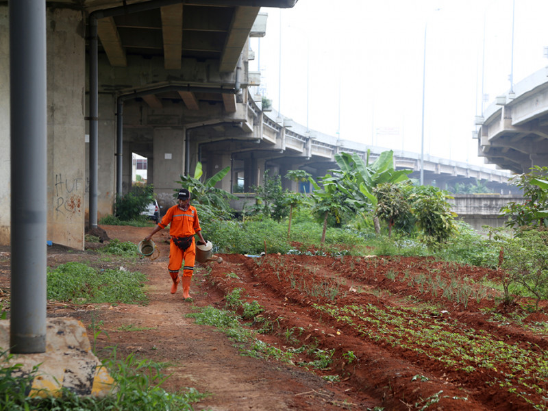Lahan kosong di RW 06, Kelurahan Cipinang Melayu, Makasar, Jakarta Timur, dimanfaatkan sebagai area pertanian perkotaan (urban farming). Area pertanian tersebut dikelola oleh Petugas Penanganan Prasarana dan Sarana Umum (PPSU) Kelurahan setempat. (Foto: Reza Hapiz/beritajakarta.id)