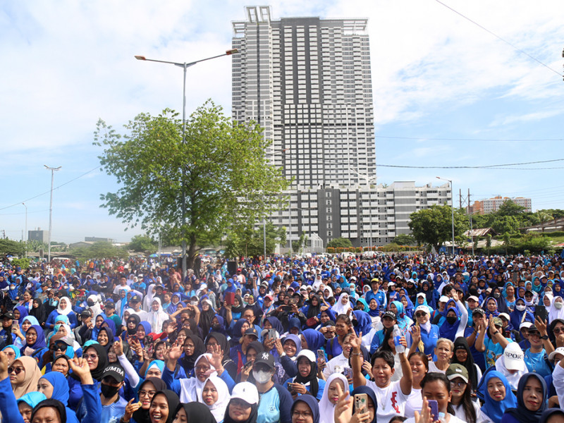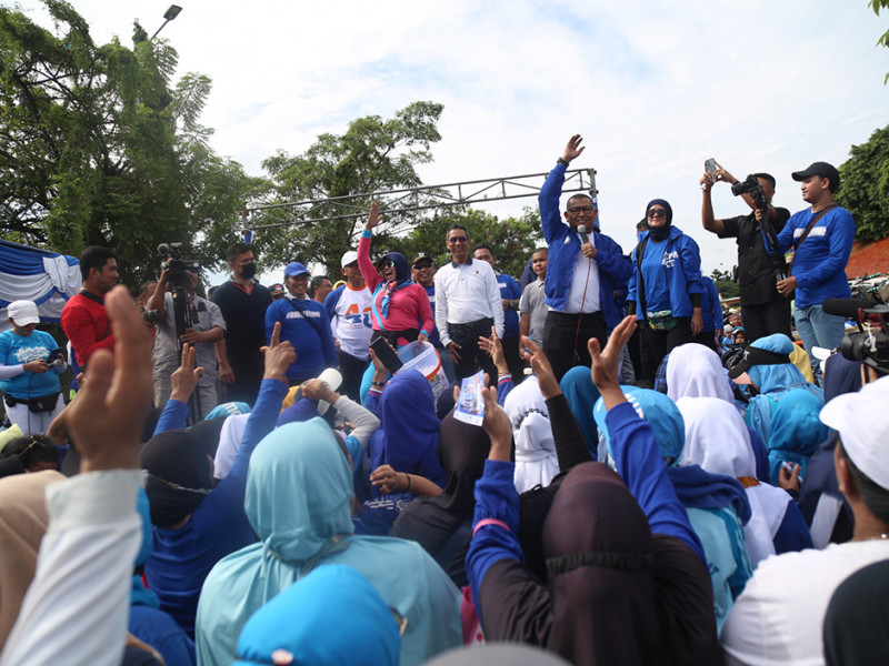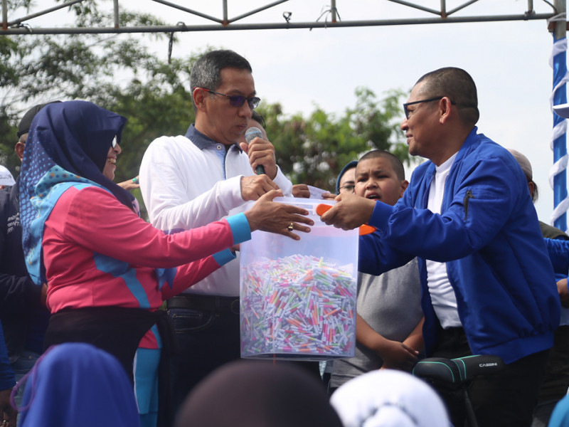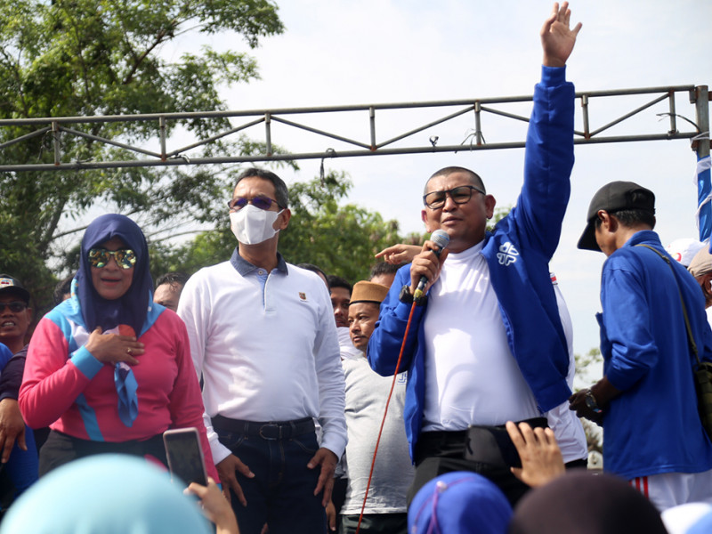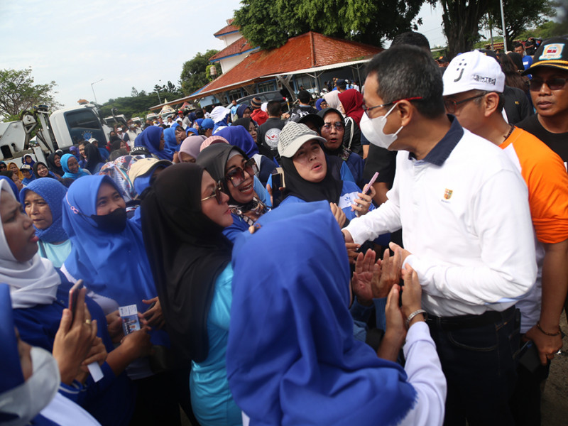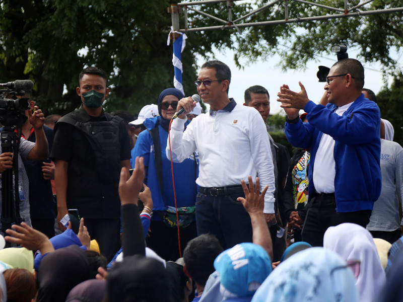 Penjabat (Pj) Gubernur DKI Jakarta, Heru Budi Hartono mengikuti kegiatan senam bersama di halaman parkir Terminal Rawa Buaya, Duri Kosambi, Jakarta Barat, Minggu (23/10). Tak hanya itu, Heru yang hadir bersama anggota DPRD DKI, Lukmanul Hakim juga membagikan doorprize kepada warga. (Foto: Mochamad Tresna Suheryanto/beritajakarta.id)